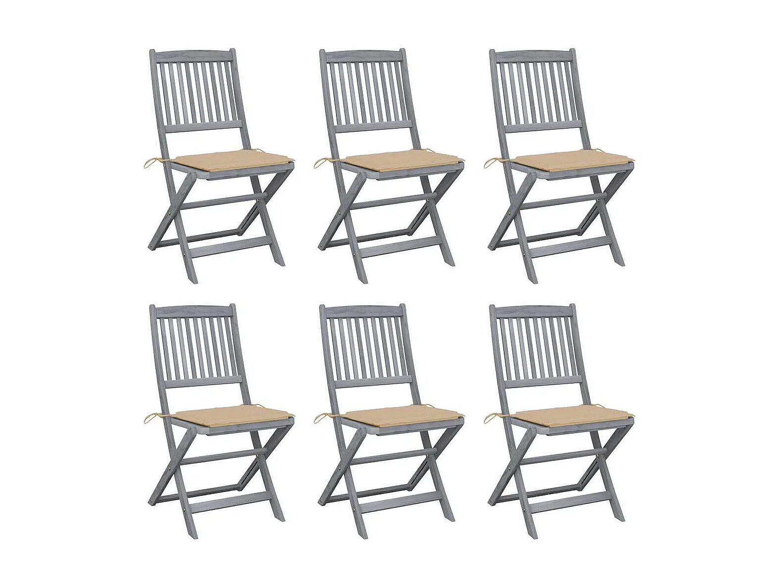 Chaises pliables d'extérieur lot de 6 et coussins Bois d'acacia