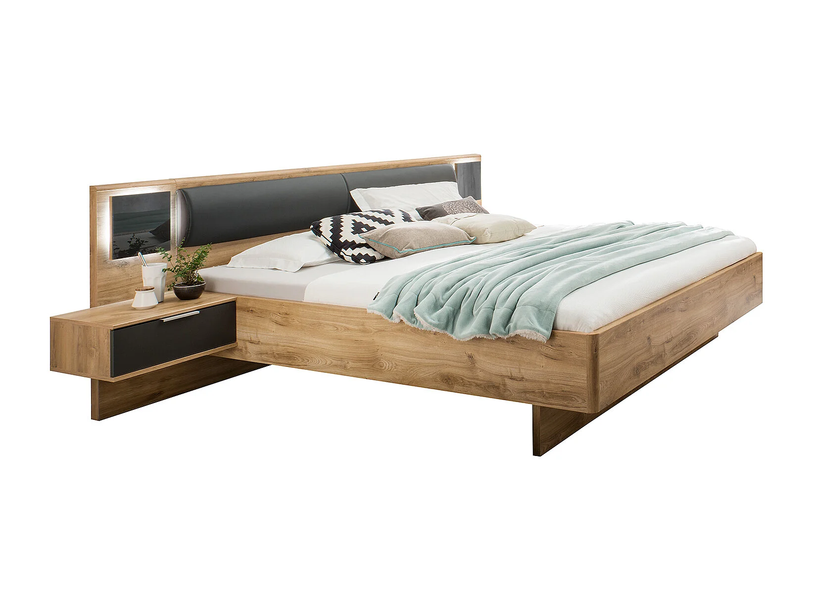 Chambre à coucher complète adulte (lit 160x200 cm + 2 chevets + 1 tiroir + armoire + commode)