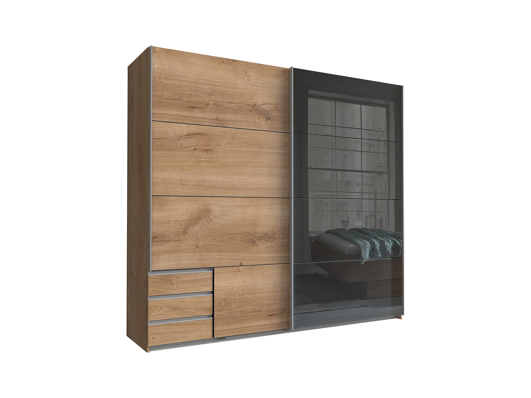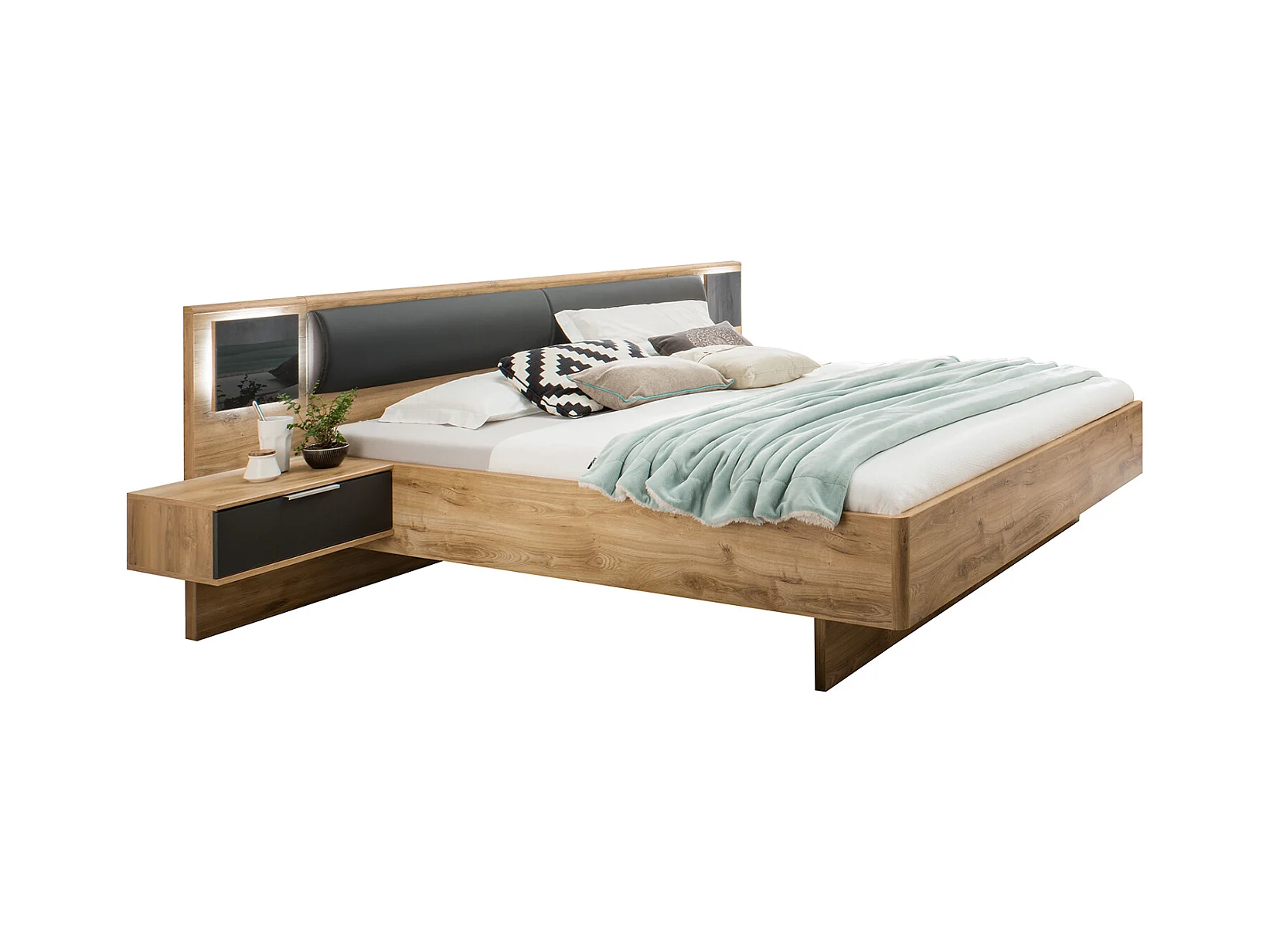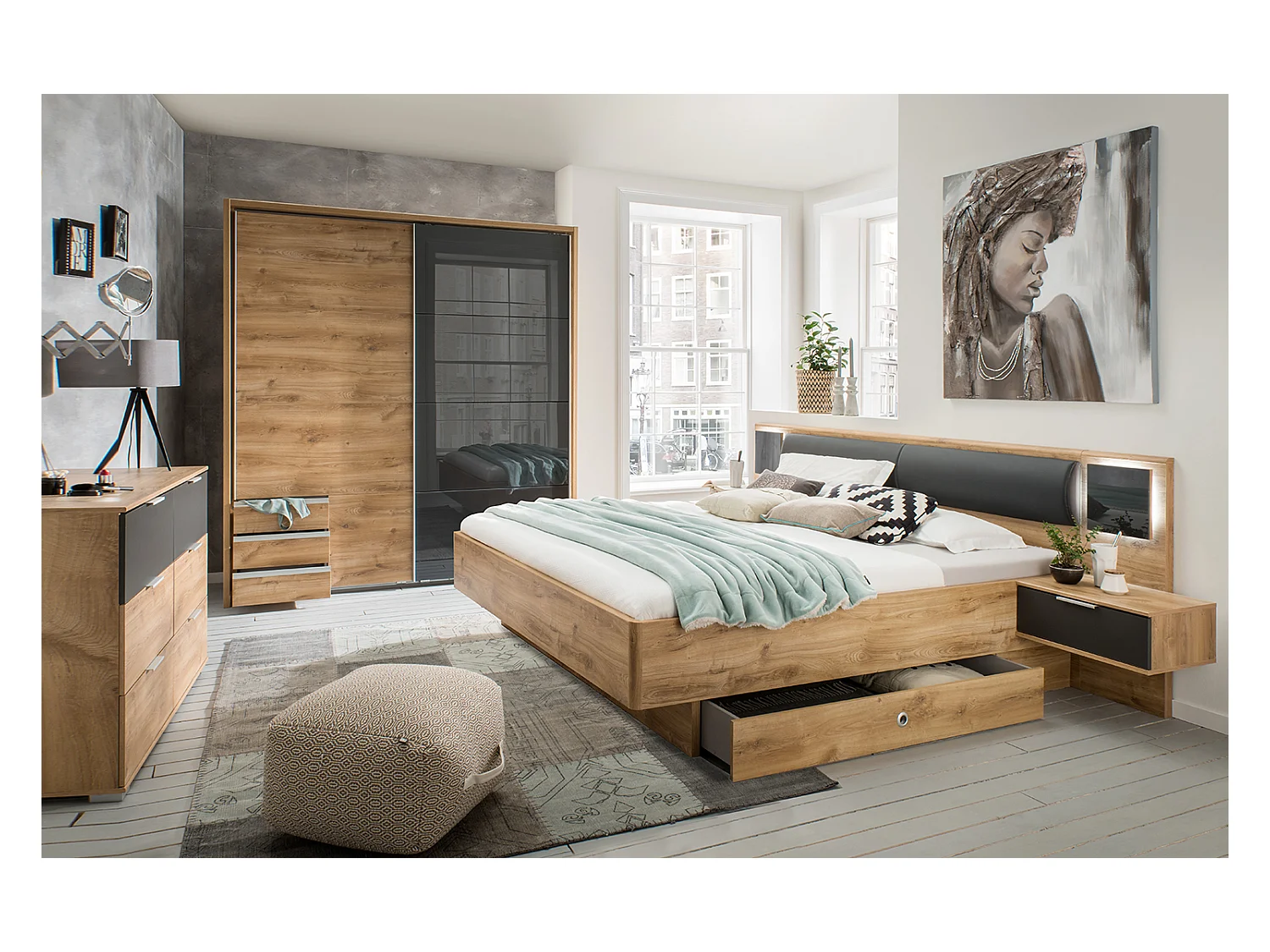 Chambre à coucher complète adulte (lit 160x200 cm Queen Size + 2 chevets + armoire + commode)