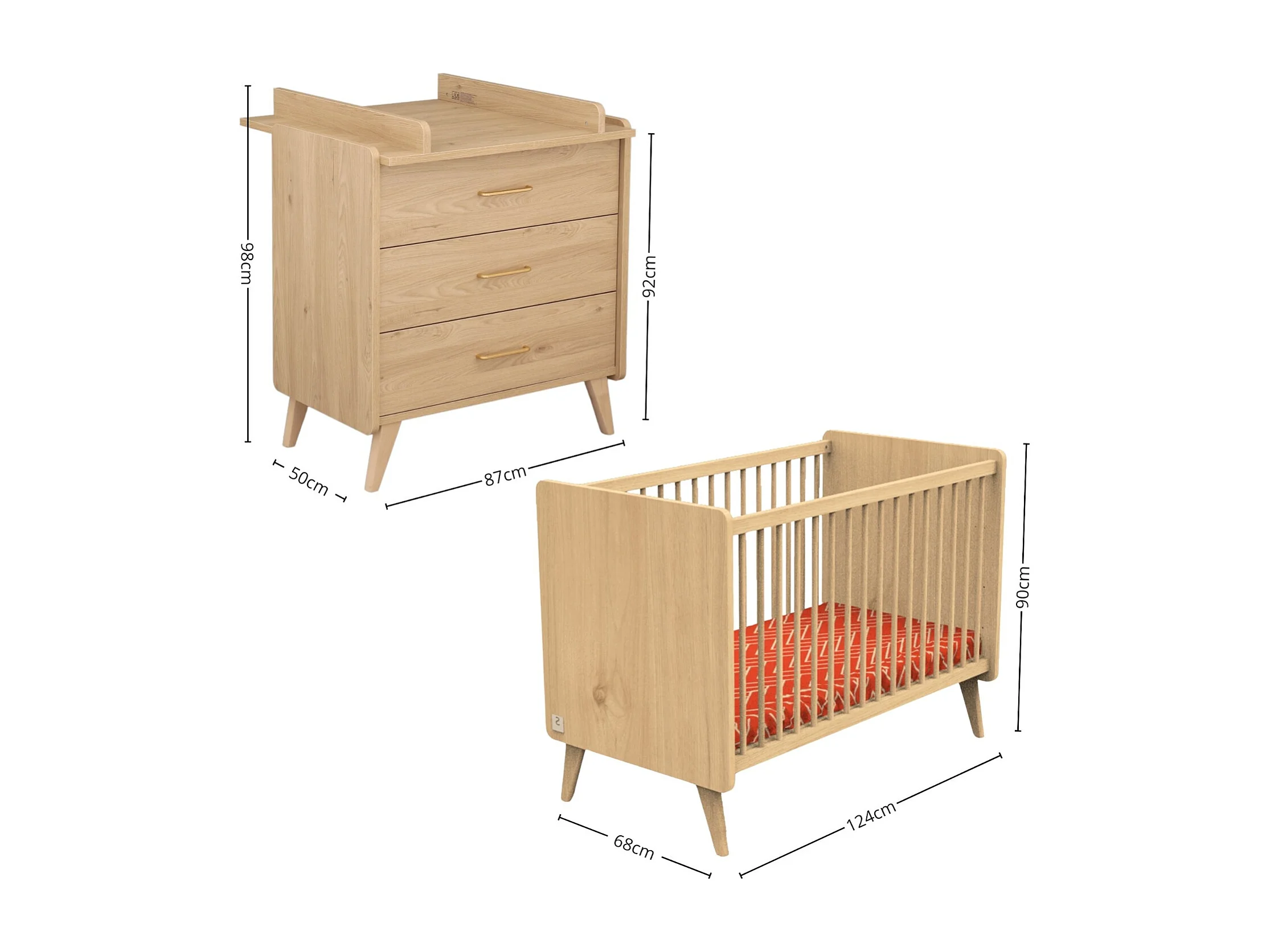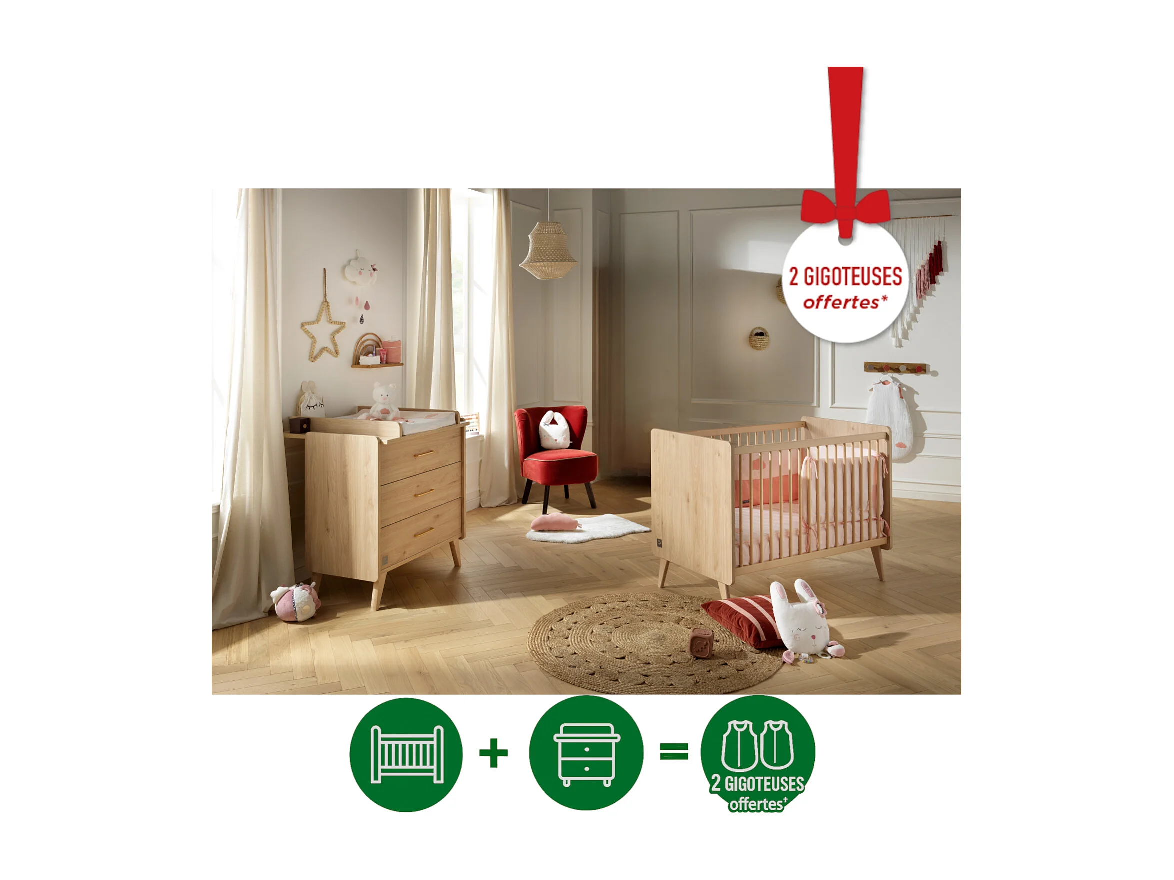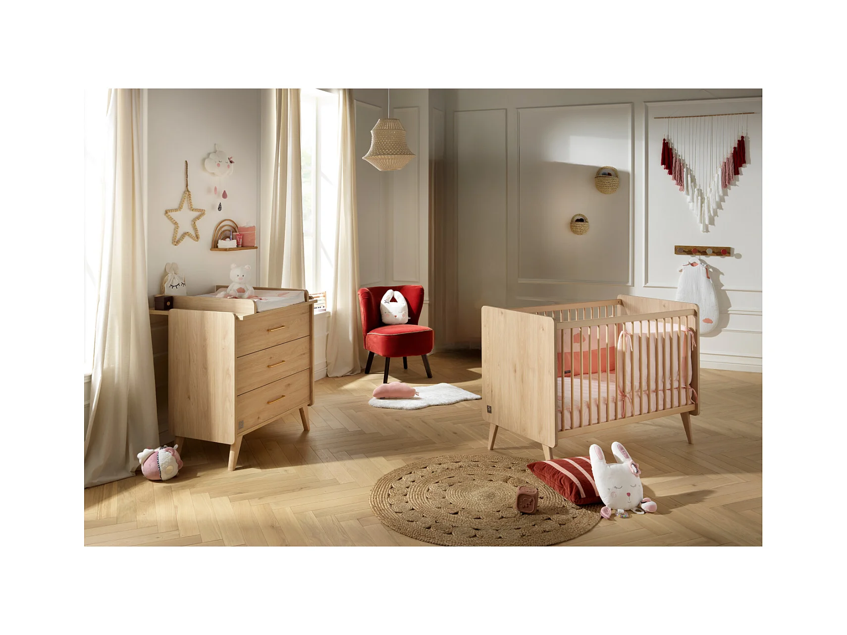 Chambre bébé complète Arty, Lit 120x60 et Commode à langer - Chêne suave ARTY - Sauthon