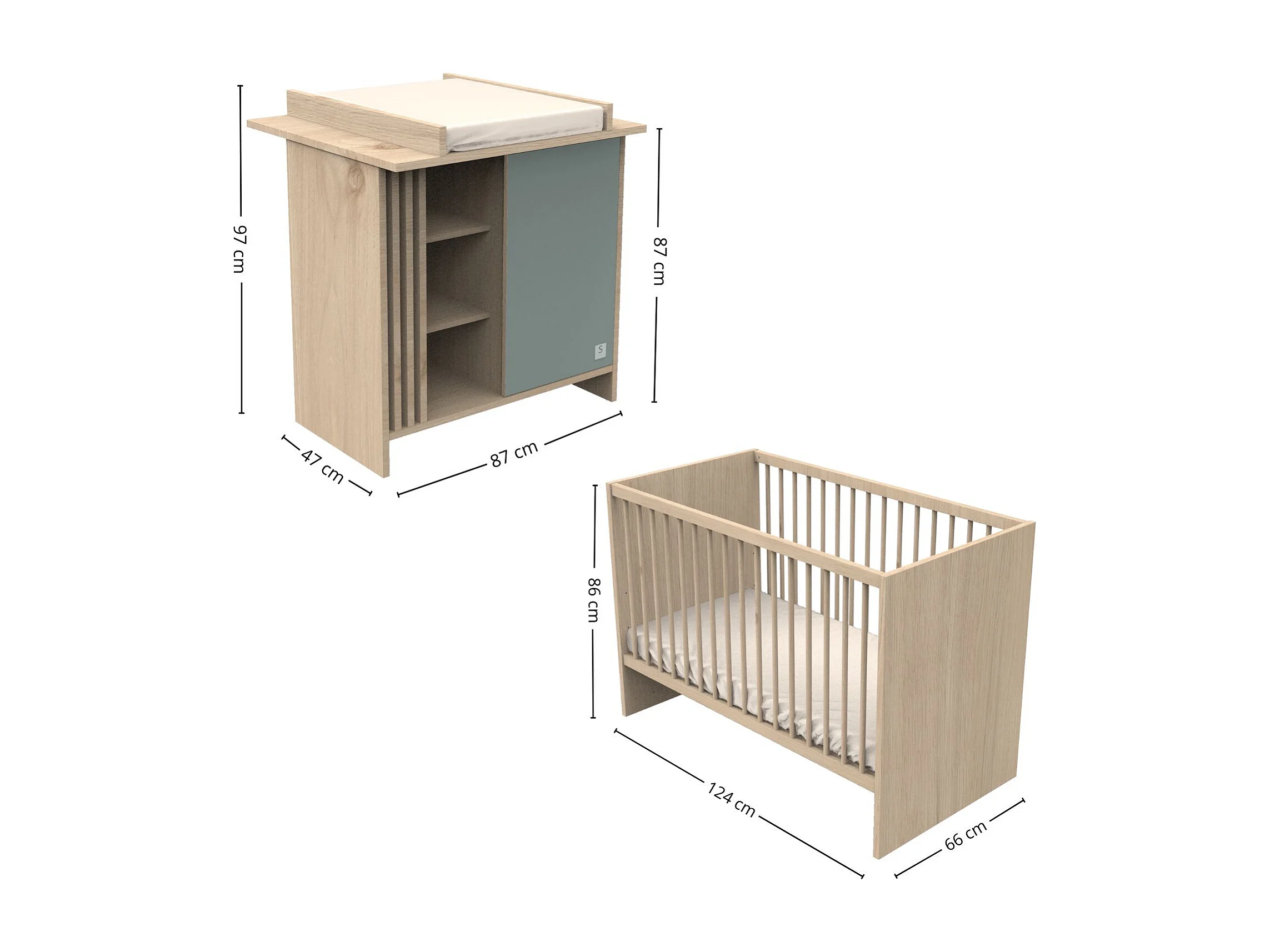 Chambre bébé complète Tokyo, Lit 120x60 et Commode à langer claustra - Chêne suave TOKYO - Sauthon