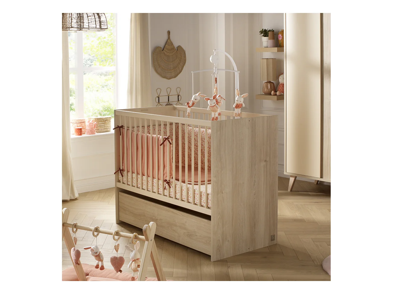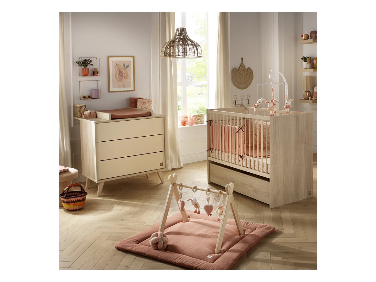 Chambre bébé évolutive Mélinée, Lit 120x60 évolutif et Commode à langer 3 tiroirs - Chêne sépia MELINEE - Sauthon