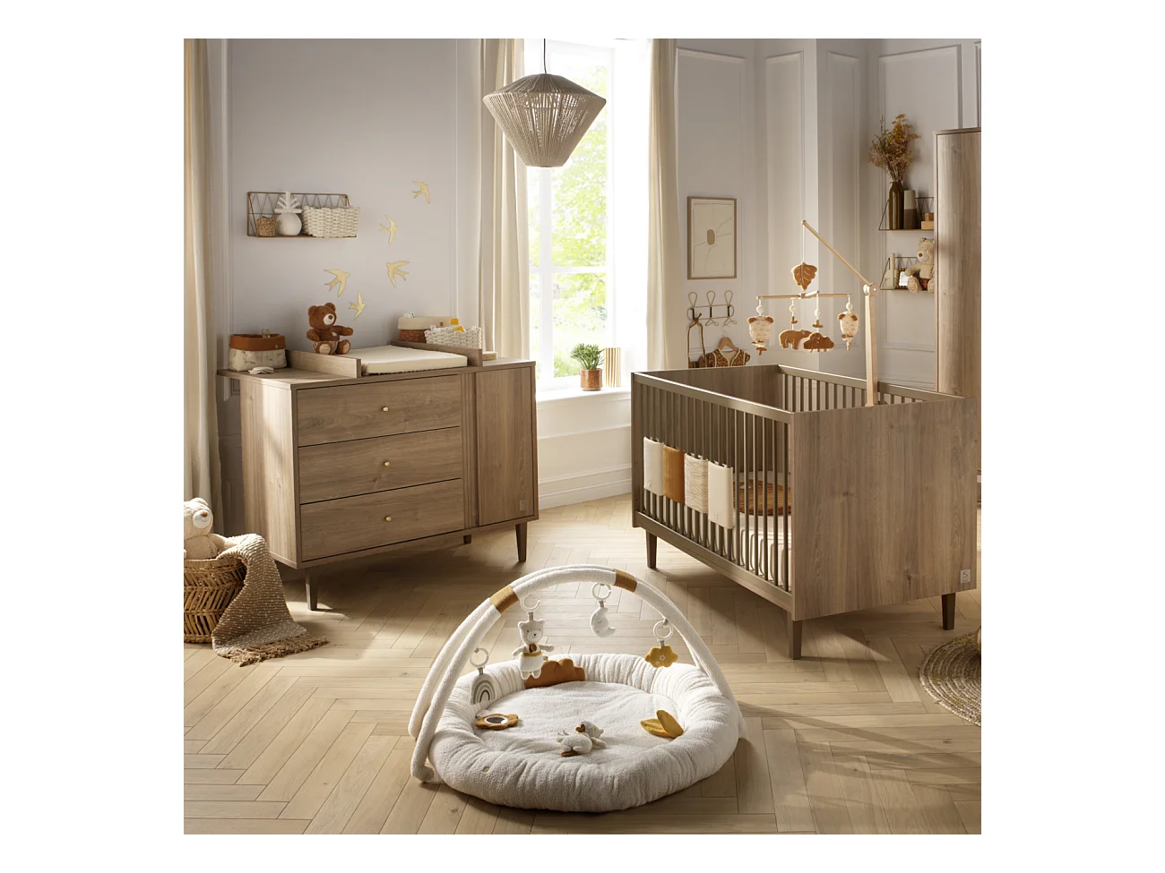 Chambre bébé évolutive Mokka, Lit 140x70 évolutif et Commode à langer - Chêne Mokka MOKKA - Sauthon