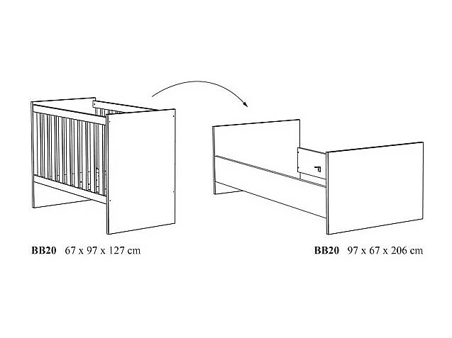 Chambre bébé ou enfant TOMMY, lit 60x120 évolutif en 90x200, armoire, commode à langer et chevet
