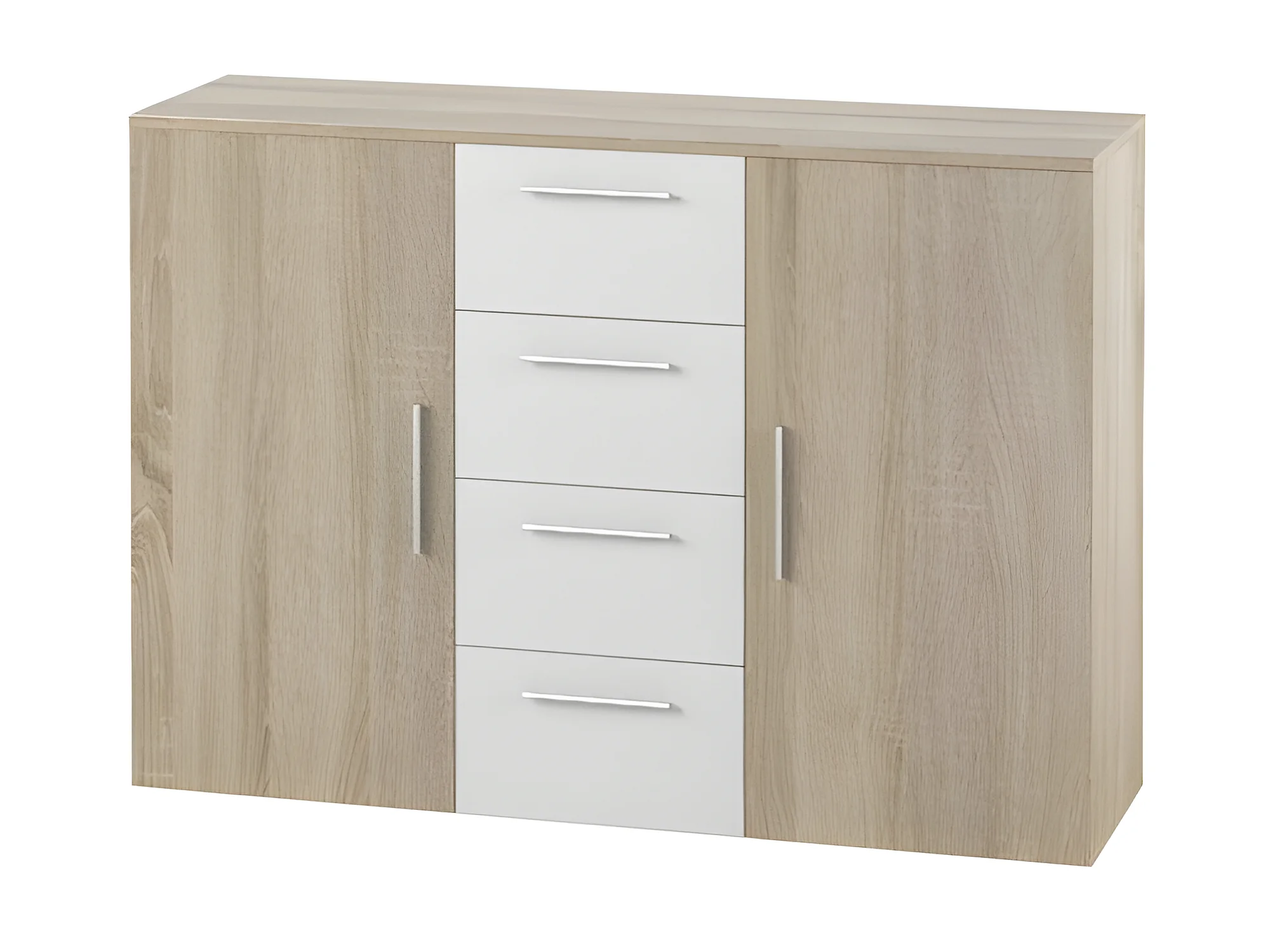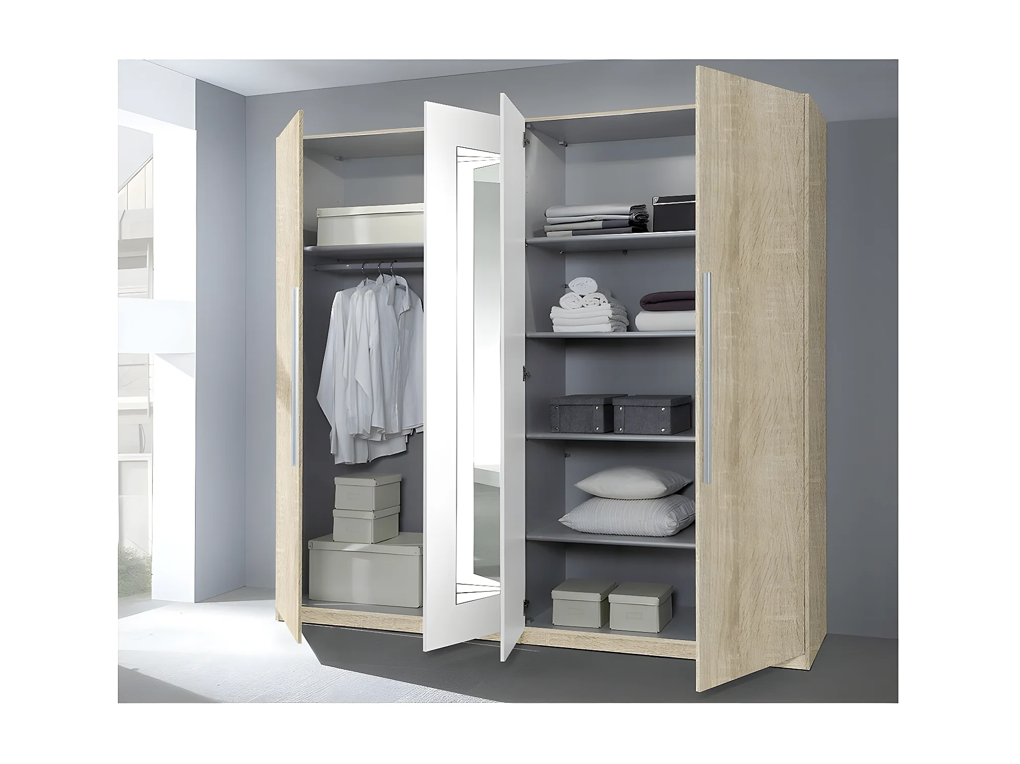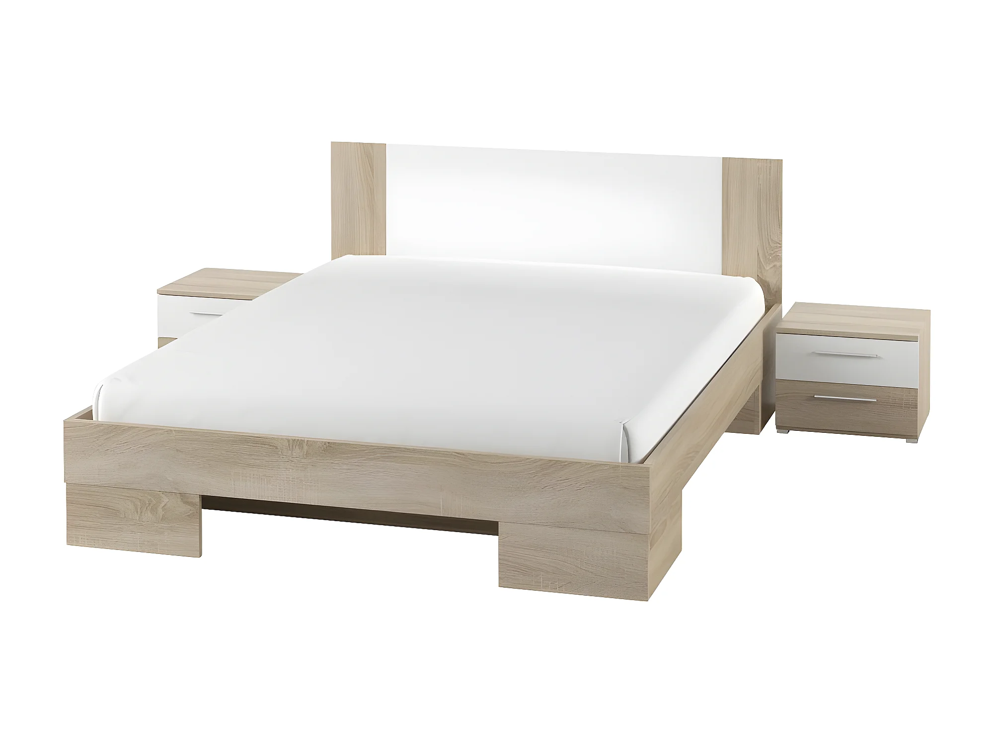 Chambre complète Irina couleur chêne et blanc : Lit 180x200 cm + armoire + commode + chevets.
