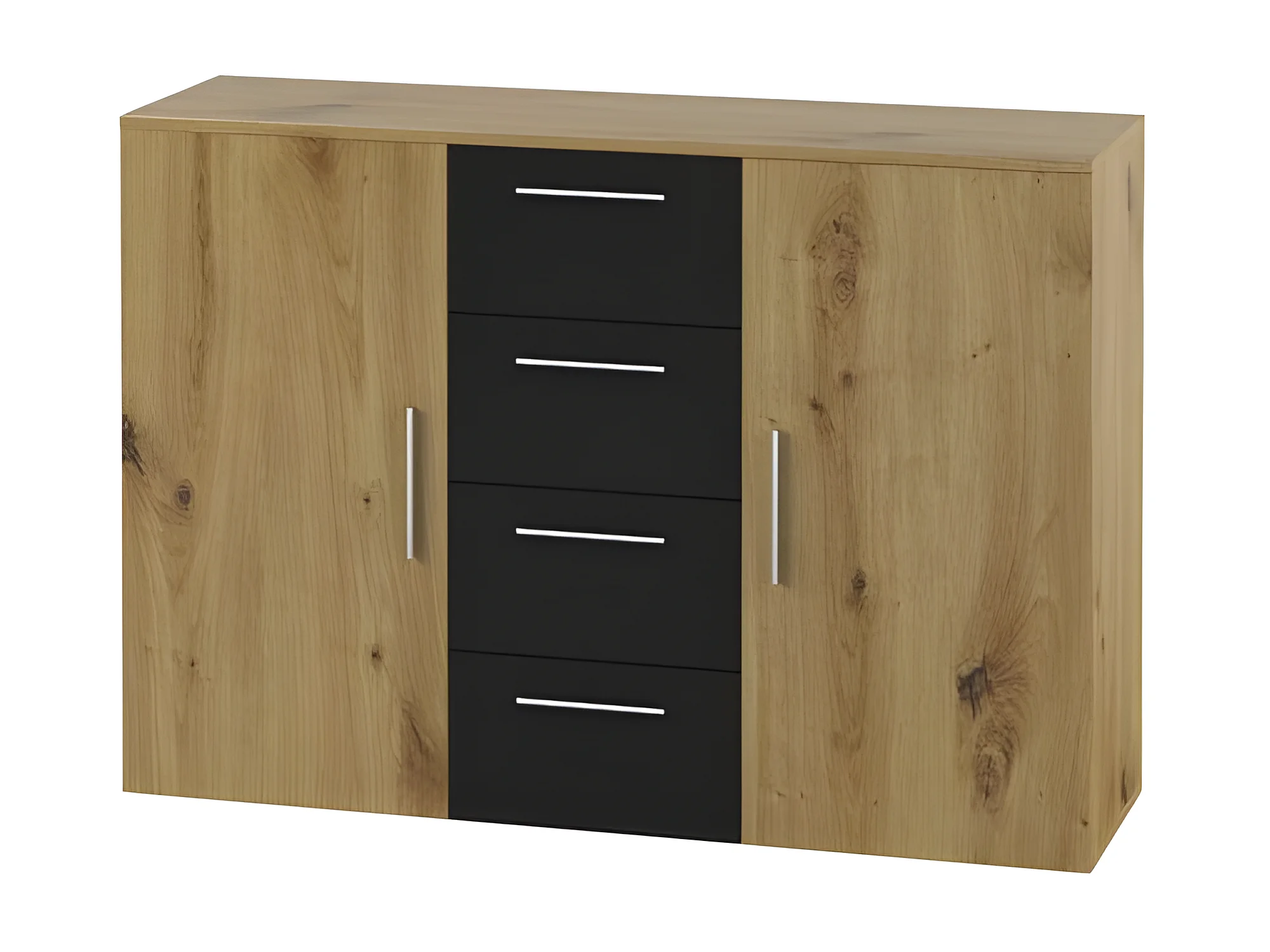 Chambre complète Irina couleur chêne et noir: Lit 160x200 cm + armoire + commode + chevets.