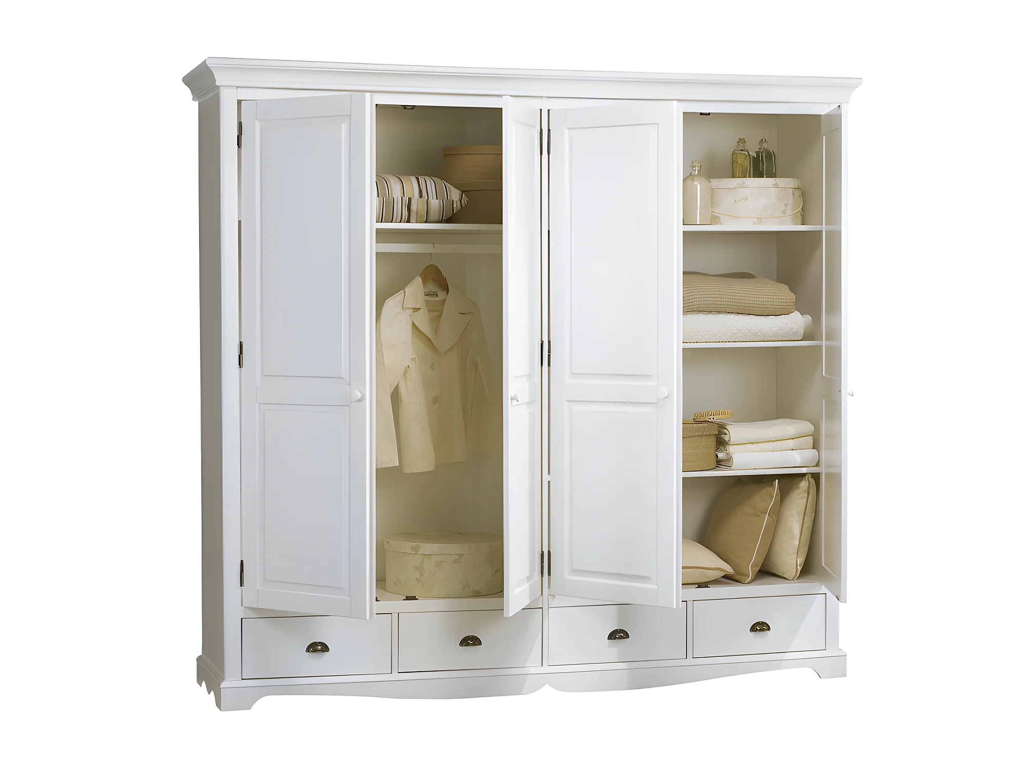 Chambre Complète Blanche Style Anglais Lit 140 cm Armoire et Chevet