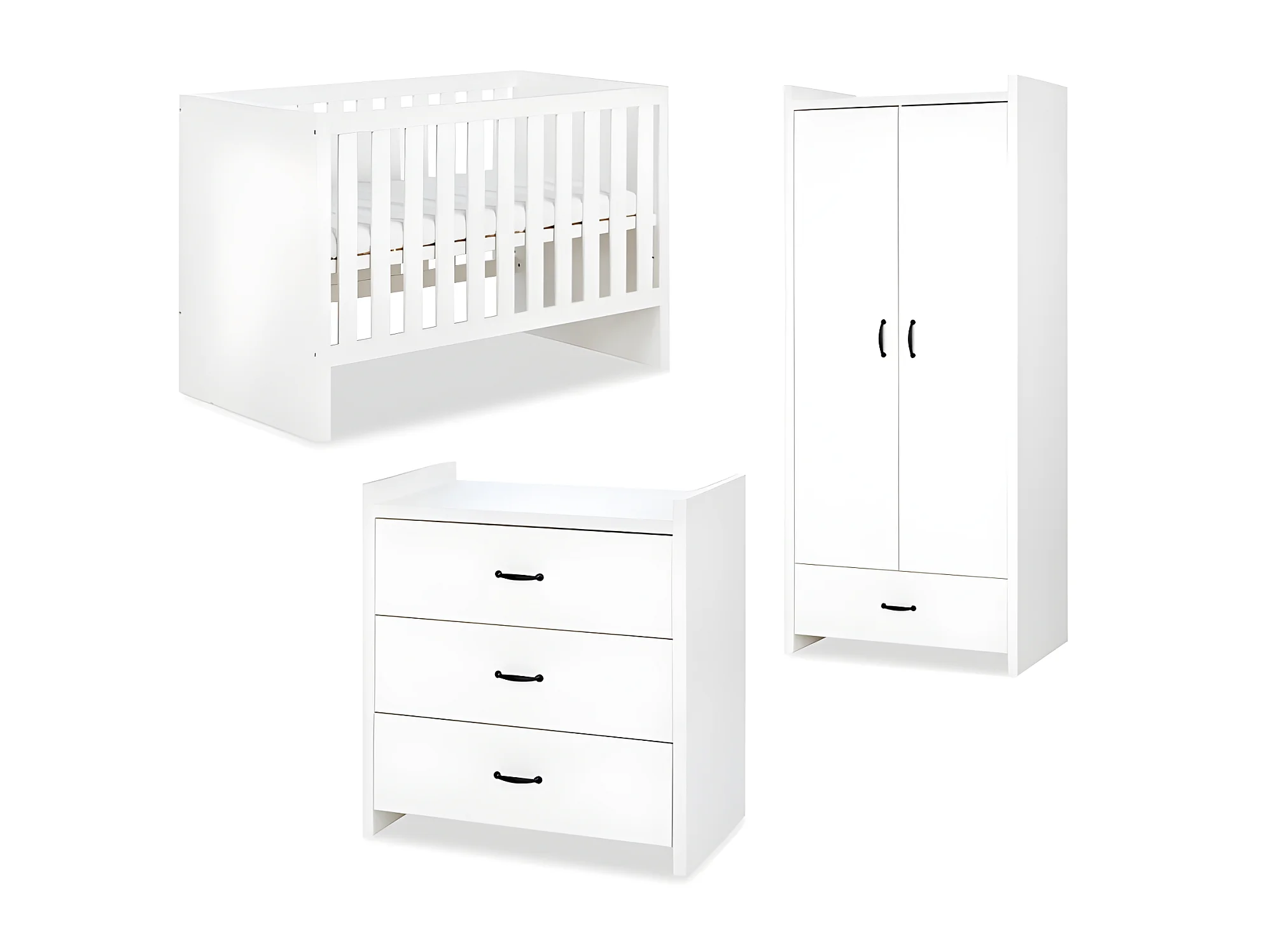 Chambre complète Lit bébé - commode - Armoire LittleSky by Klups Amelia White Blanc