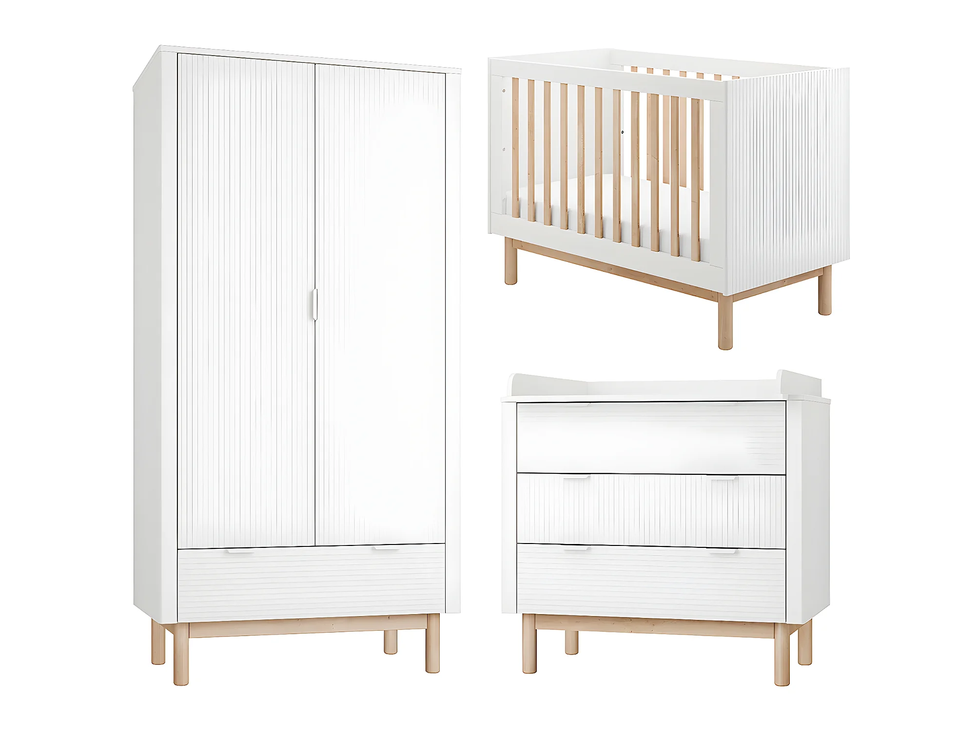 Chambre complète lit évolutif 60x120 commode à langer et armoire 2 portes Miloo Blanc