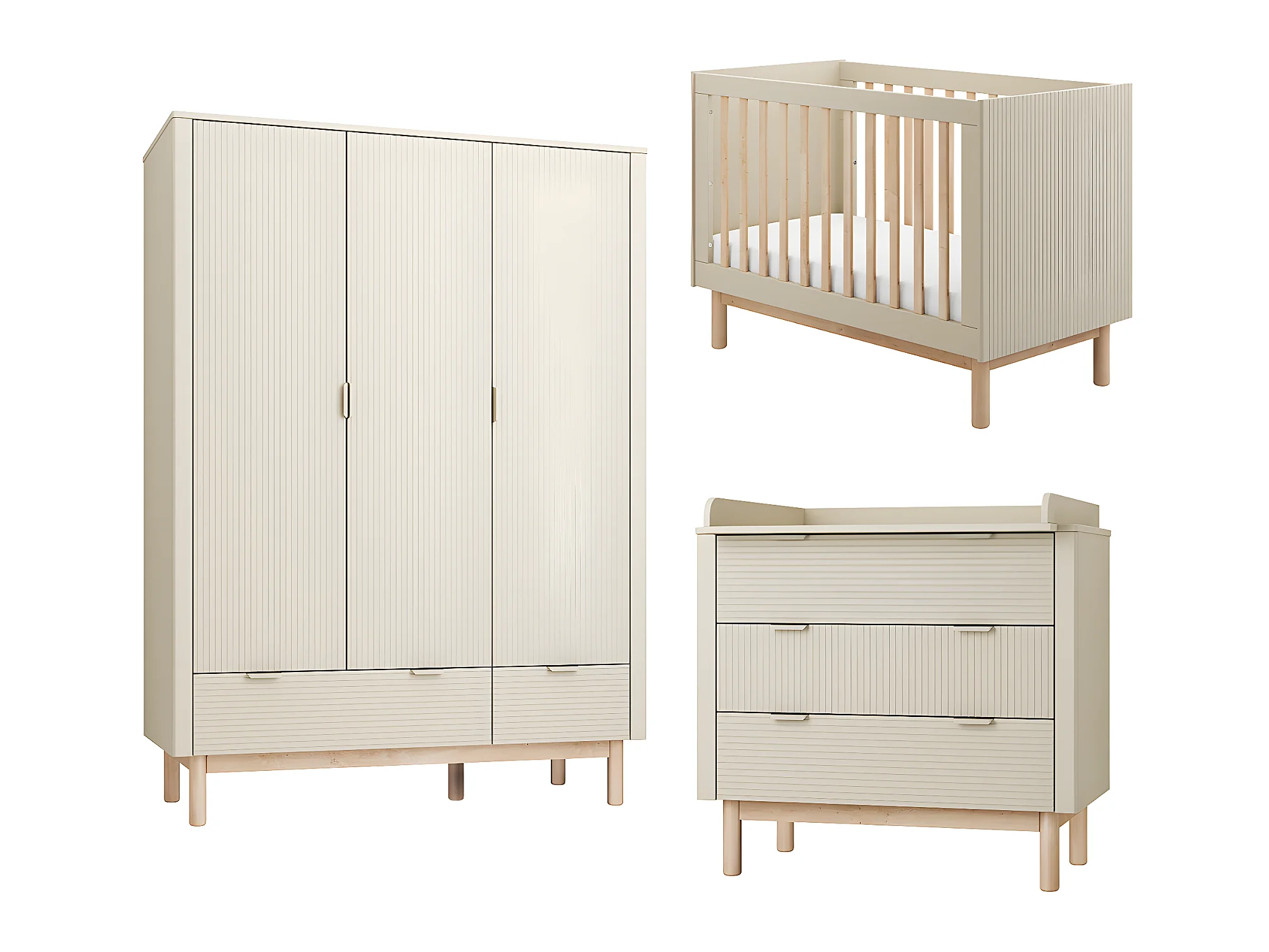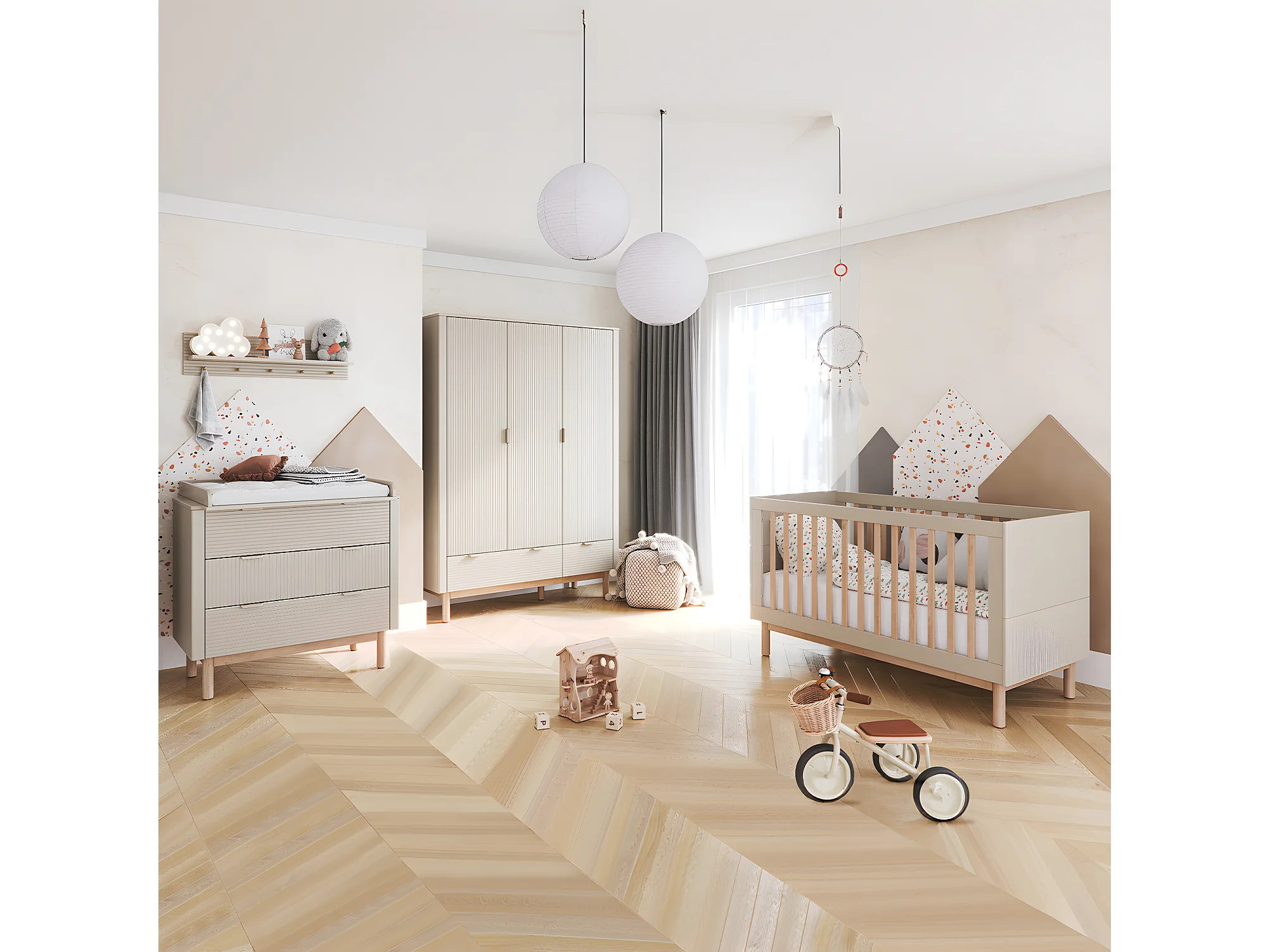 Chambre complète lit évolutif 60x120 commode à langer et armoire 3 portes Miloo Champagne