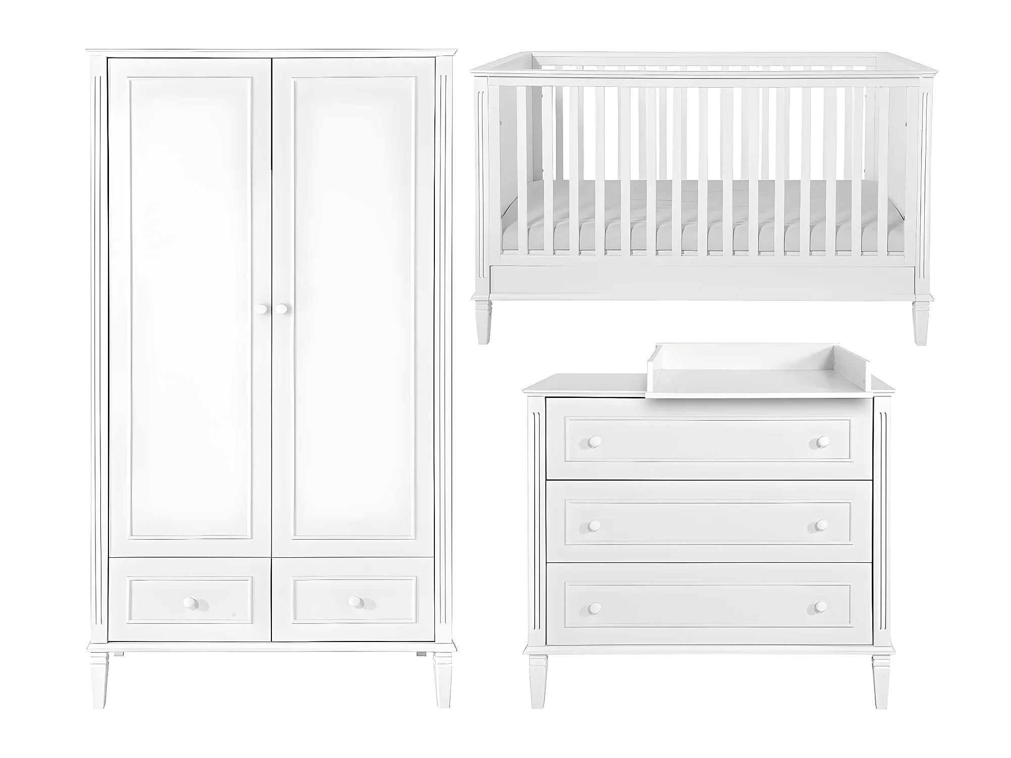 Chambre complète lit évolutif 70x140 commode à langer et armoire 2 portes Bianka Blanc