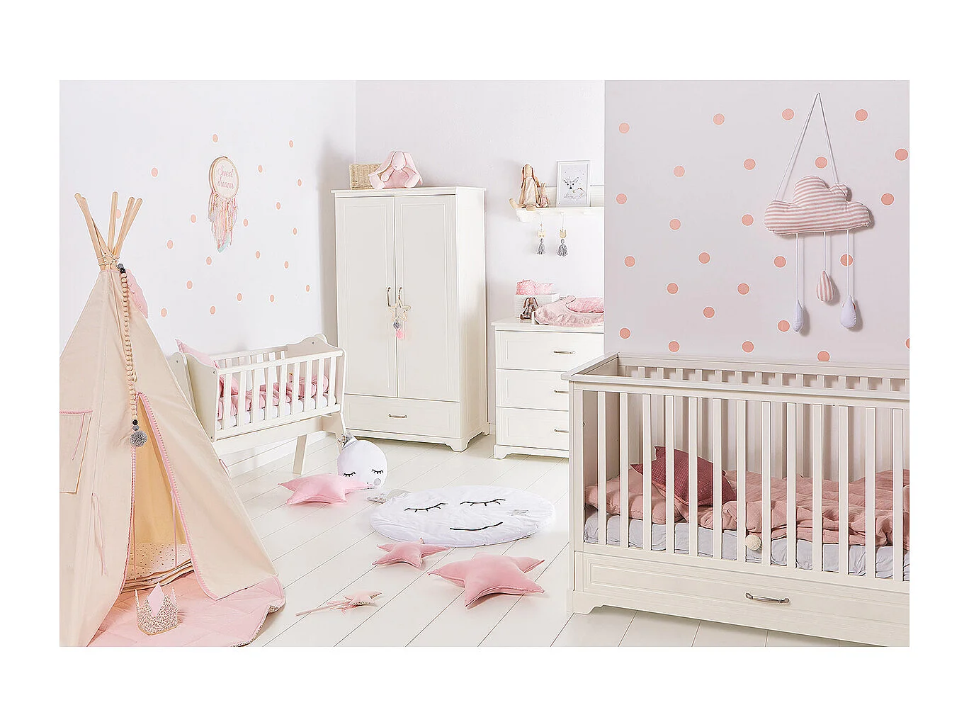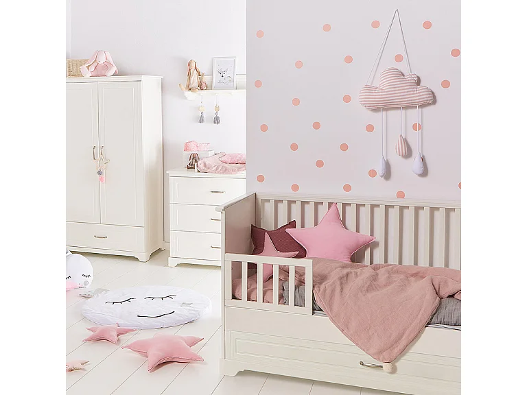 Chambre complète lit évolutif 70x140 commode à langer et armoire 2 portes Melody Blanc