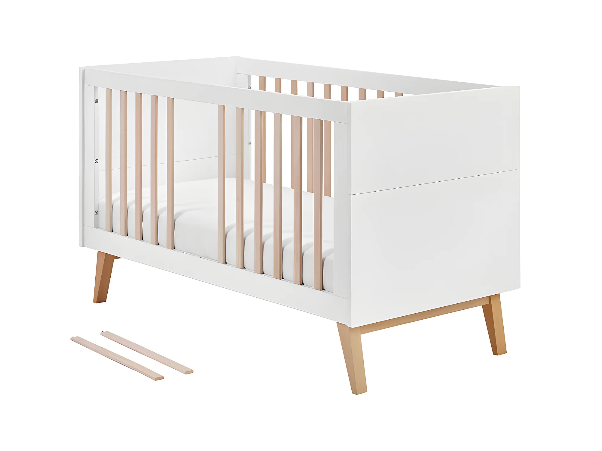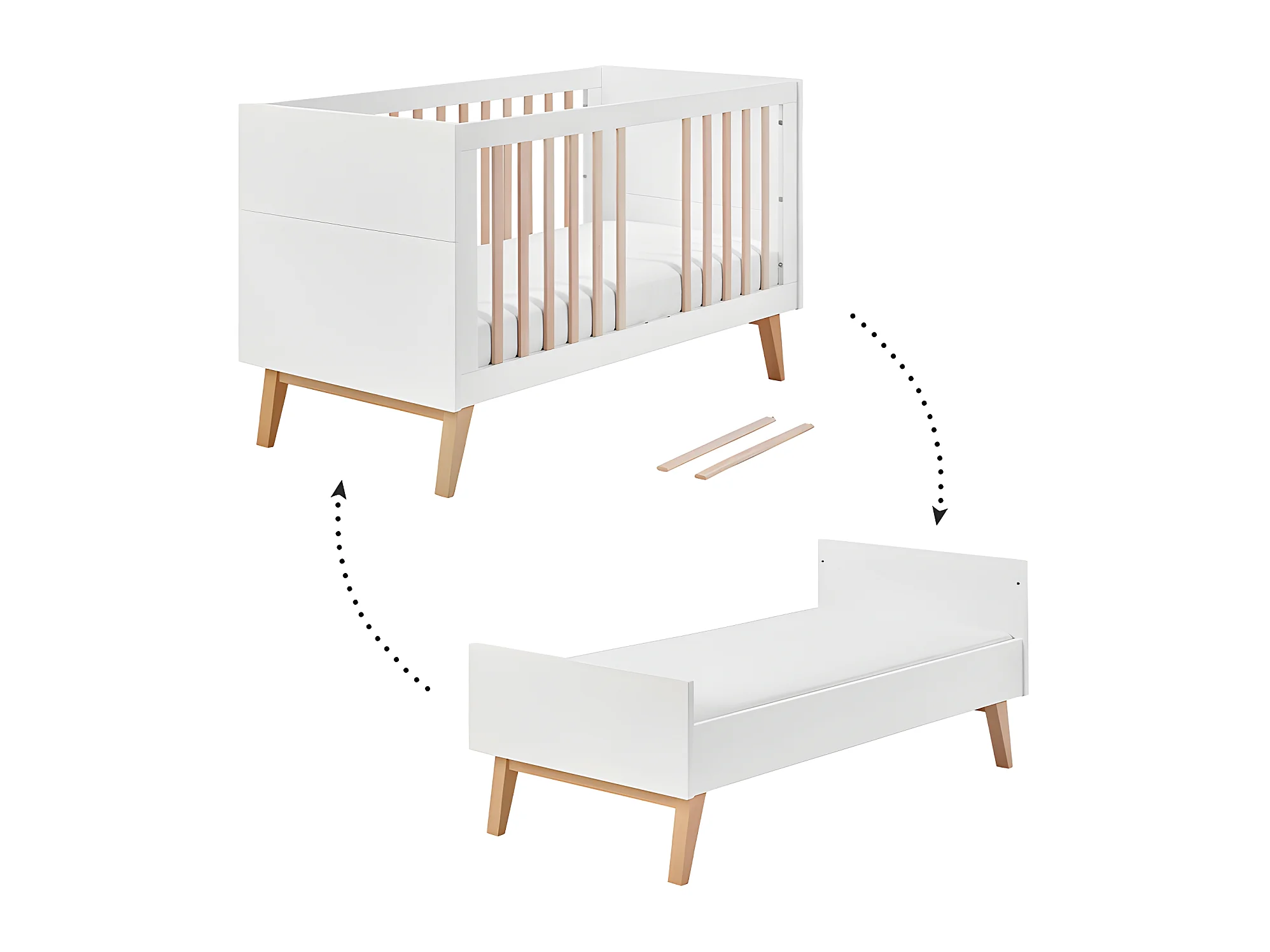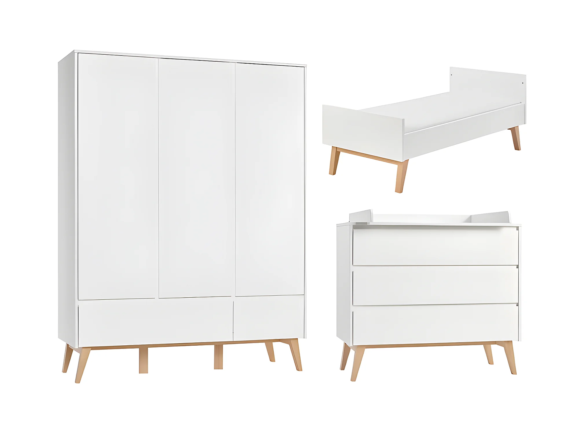 Chambre complète lit évolutif 70x140 commode à langer et armoire 3 portes Swing - Blanc et bois