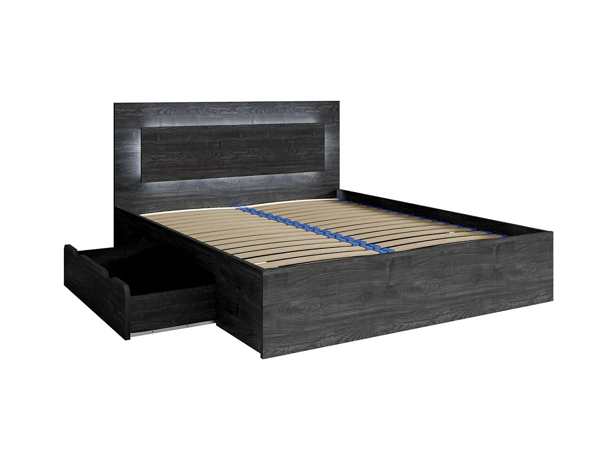 Chambre complète VELTIS – Lit 160x200 LED avec sommier + armoire + commode + chevets – Frêne noir