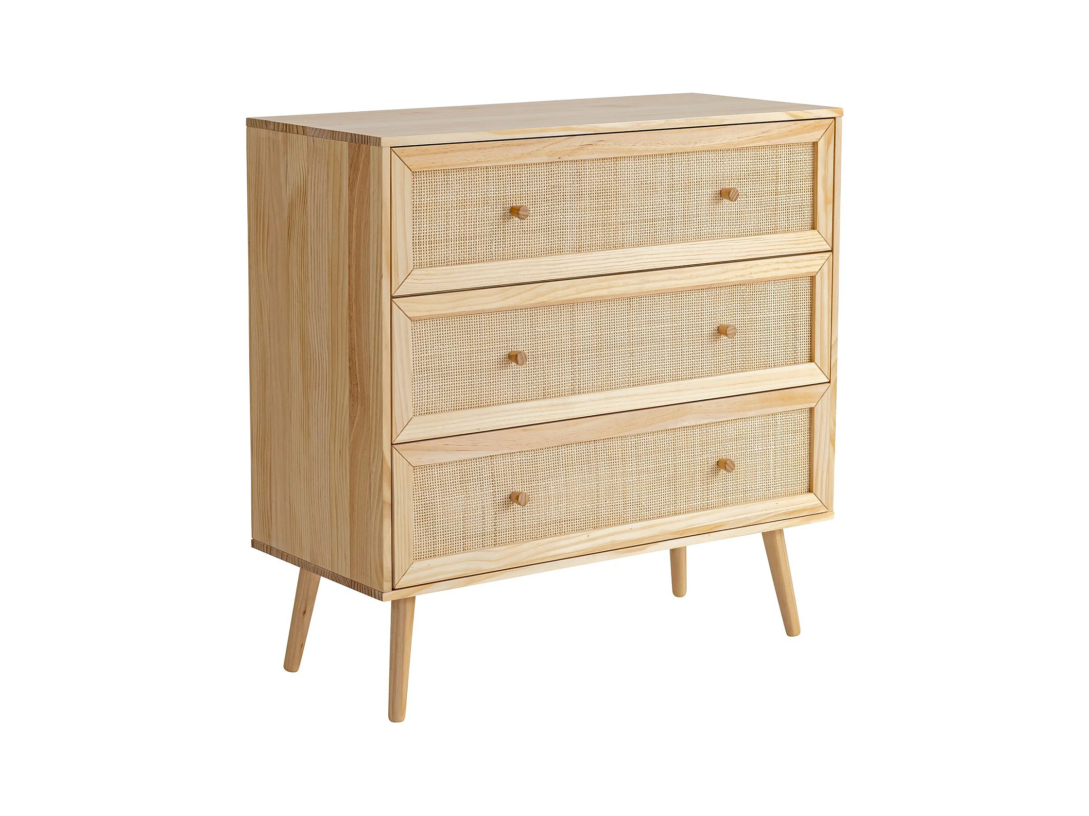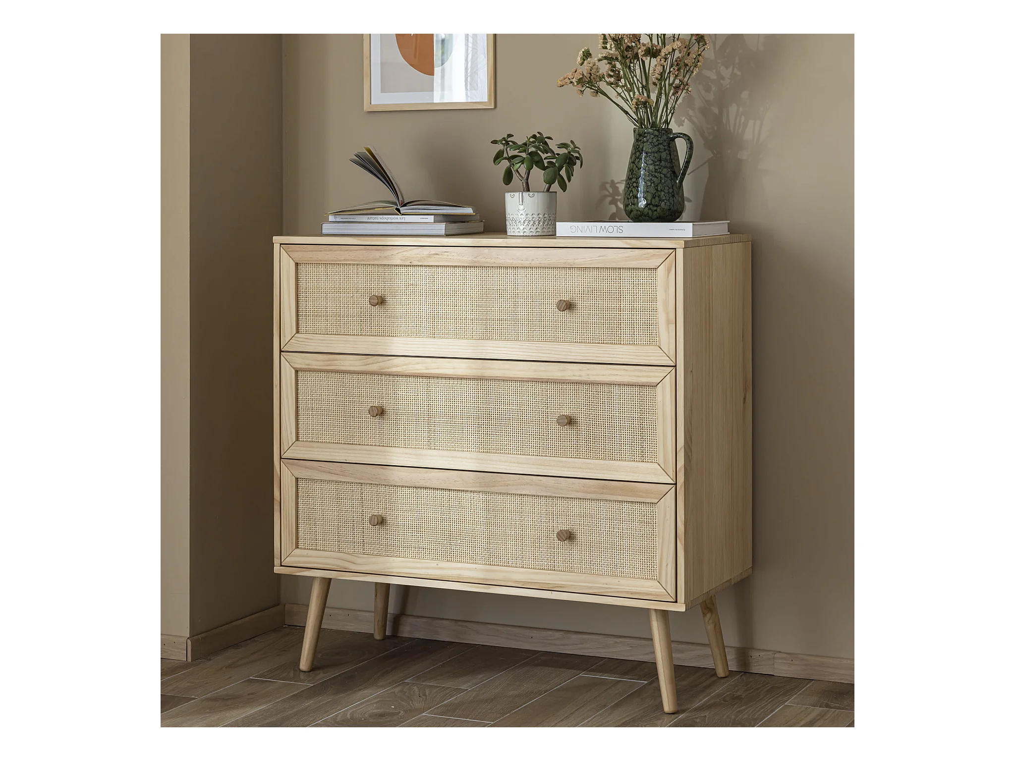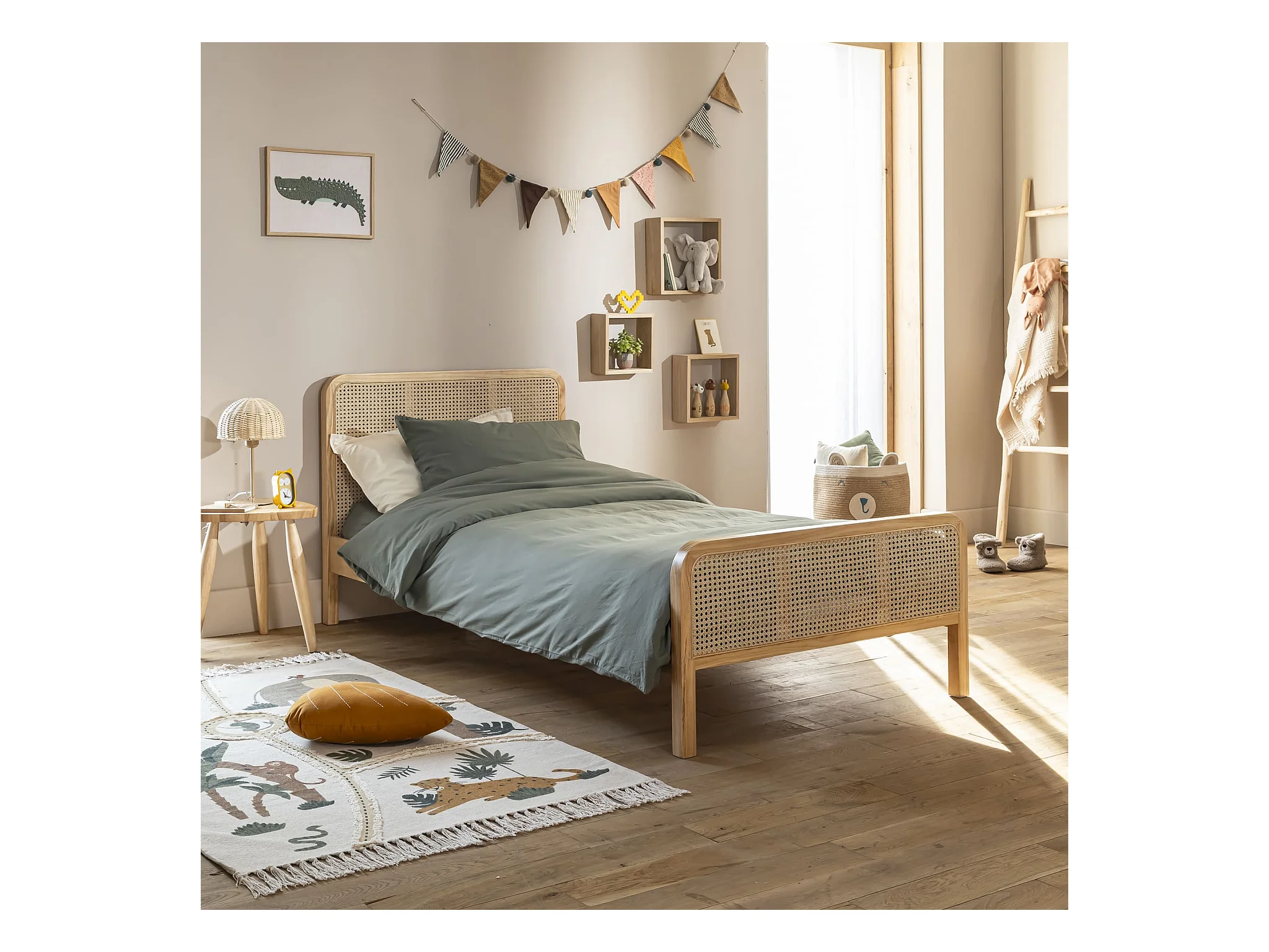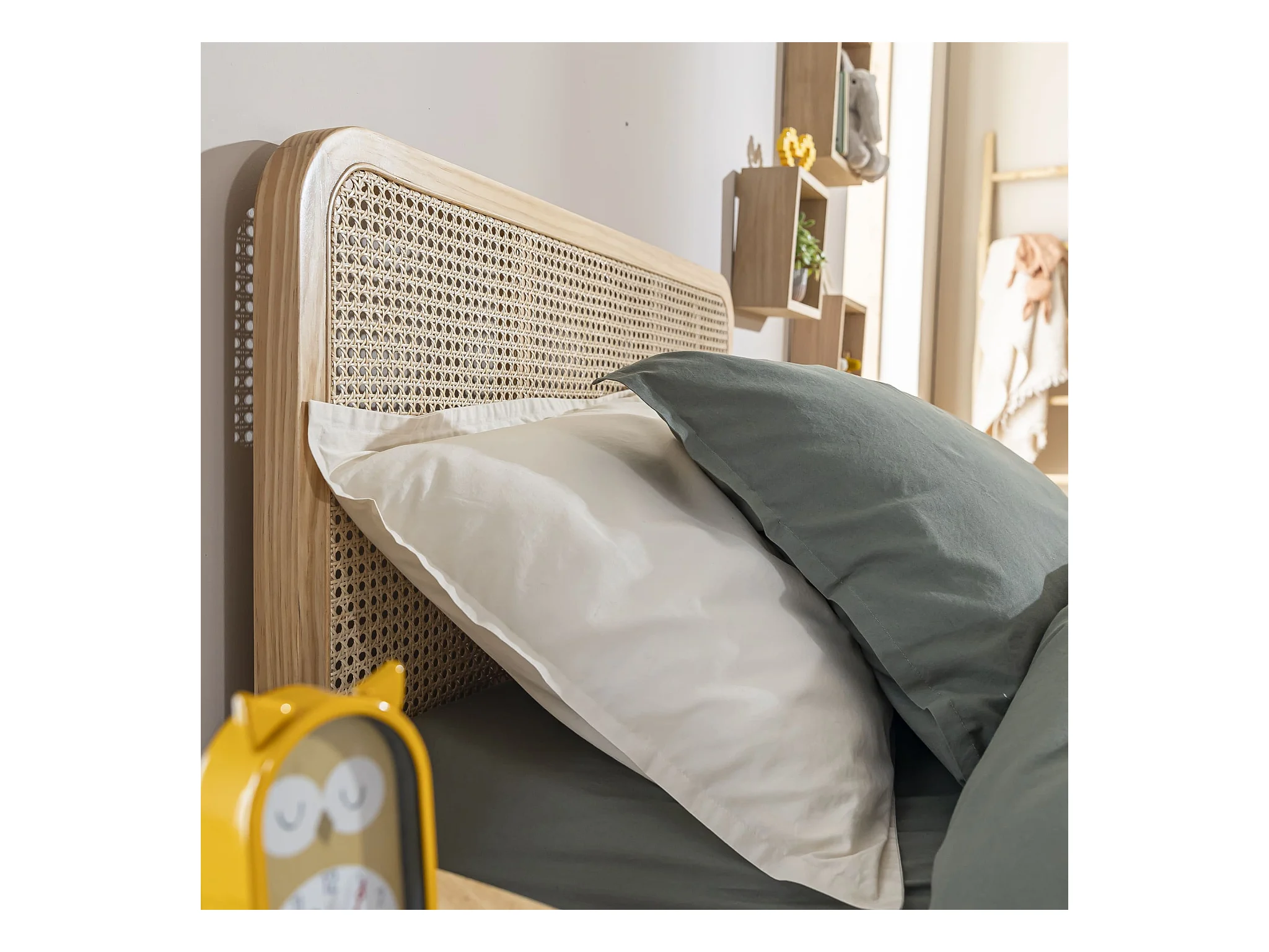 Chambre lit cannage enfant avec commode bois naturel ANNA 90x200 - ANNA