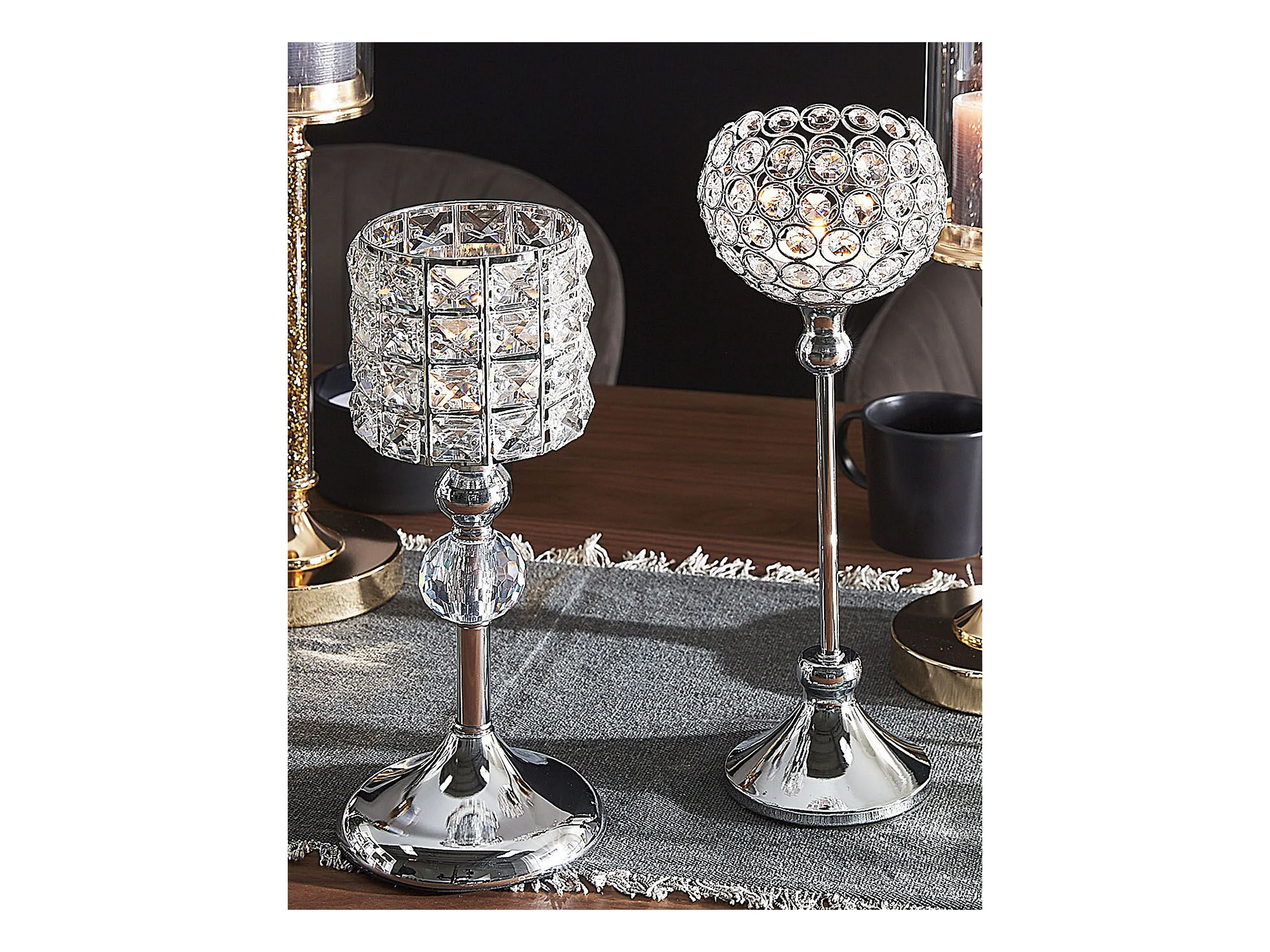 Photophore sur Pied "Sphère Diamant" 55cm Argent