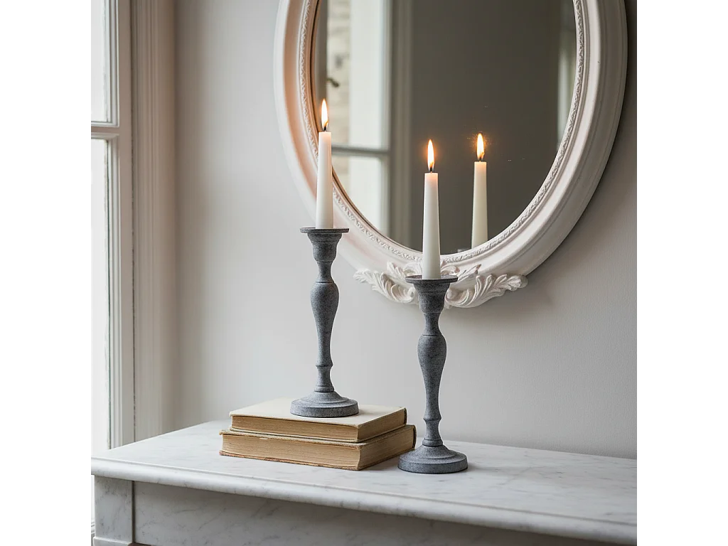 Bougeoir Design en Métal "Limo" 40cm Gris & Argent