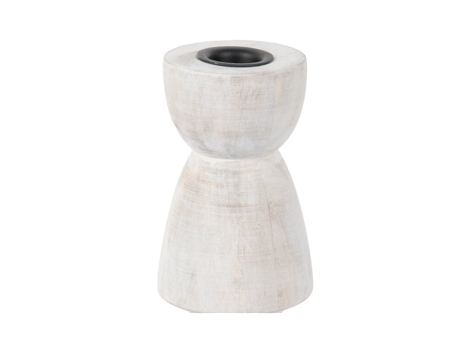 Bougeoir H. 31 cm en bois de manguier et blanc laqué - LUXORIA 2905
