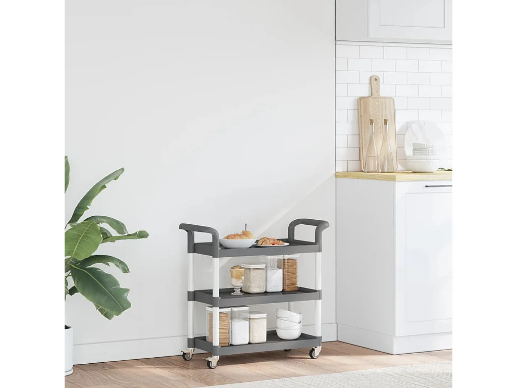 Chariot à 3 niveaux gris 77x34x72 cm aluminium