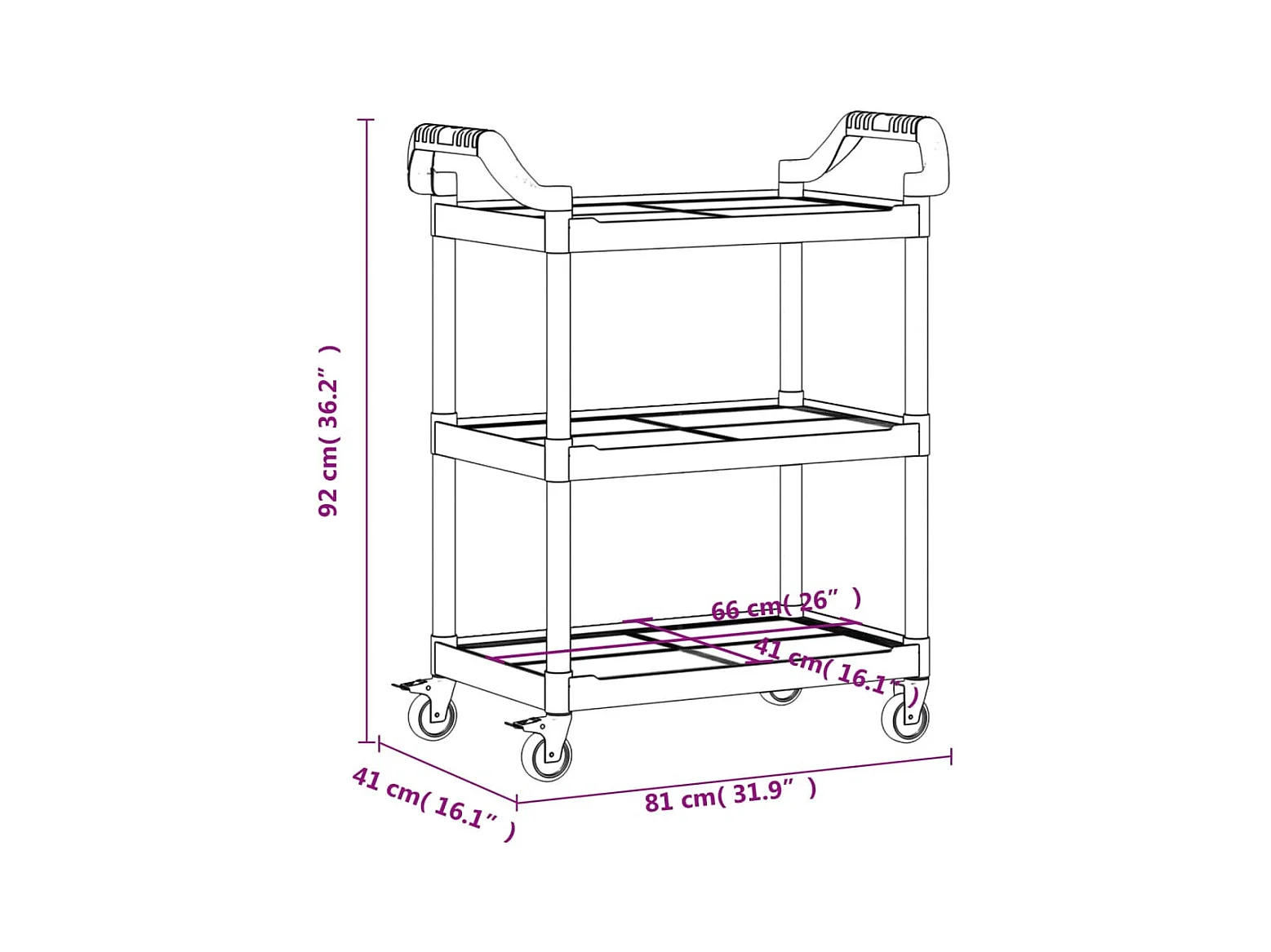 Chariot à 3 niveaux noir 81x41x92 aluminium