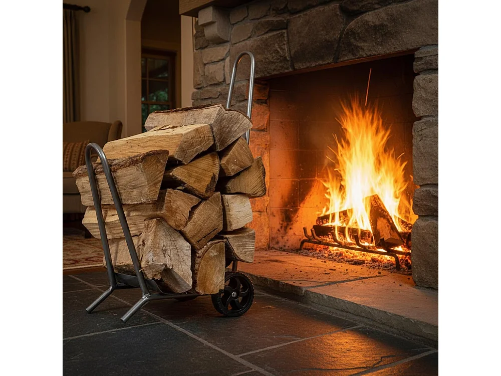 Etagère bois de cheminée - Métal - 120 x 36 x 120cm - Anthracite - Wilster