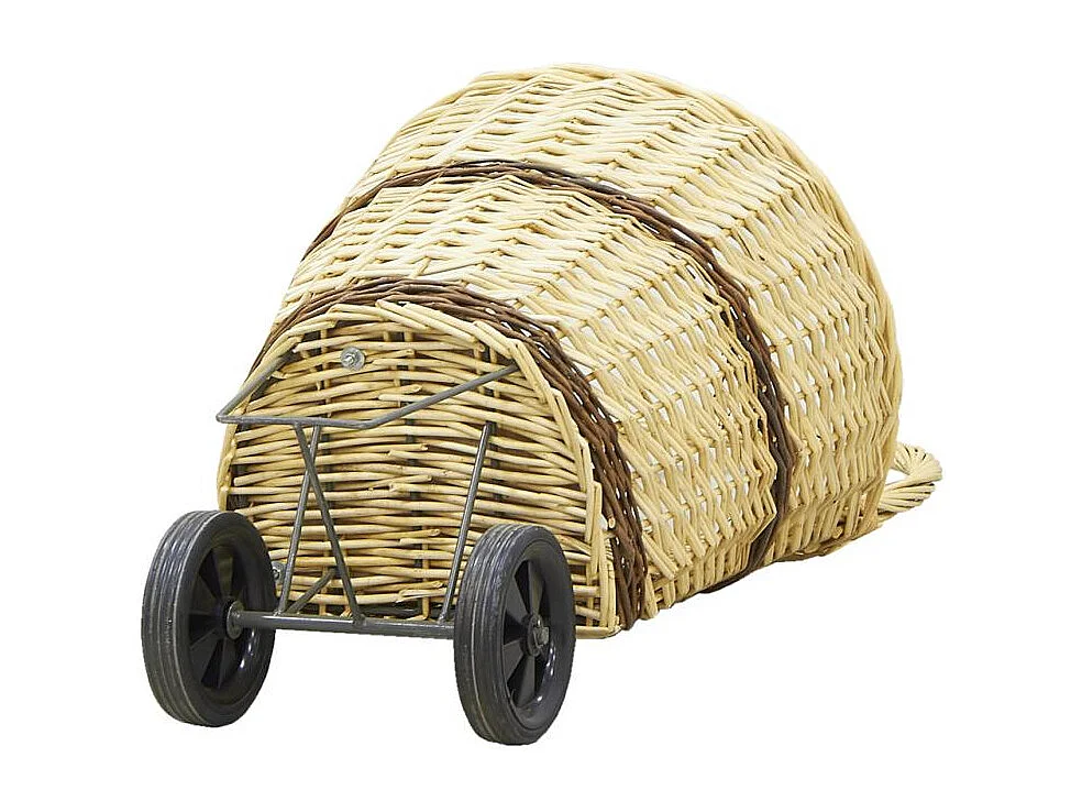 Chariot à bûches en osier sur roulettes