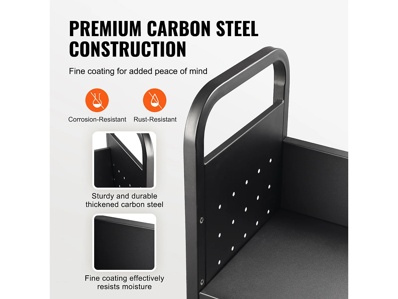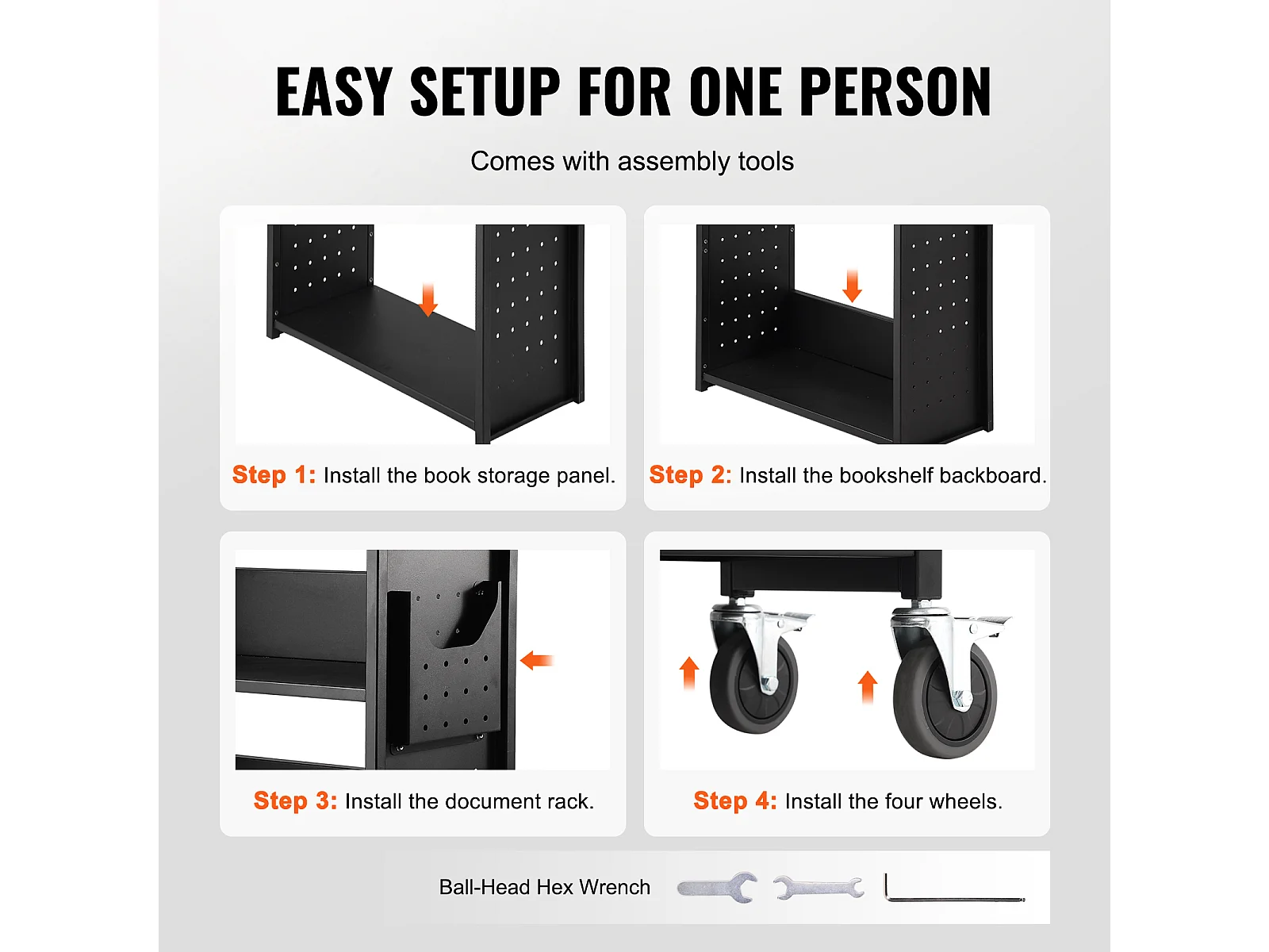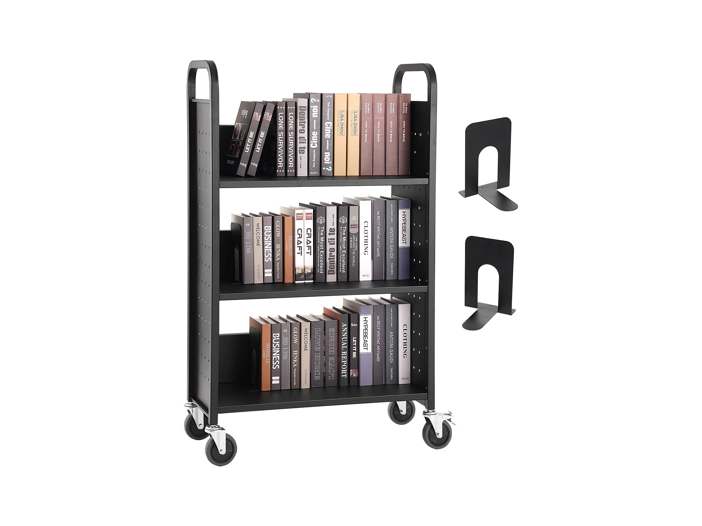 Chariot à Livres SucceBuy, Capacité de 150kg, Étagères en L à Un Seul Côté, Roues Verrouillables de 10cm, Idéal pour la Maison, le Bureau et l'École, Noir