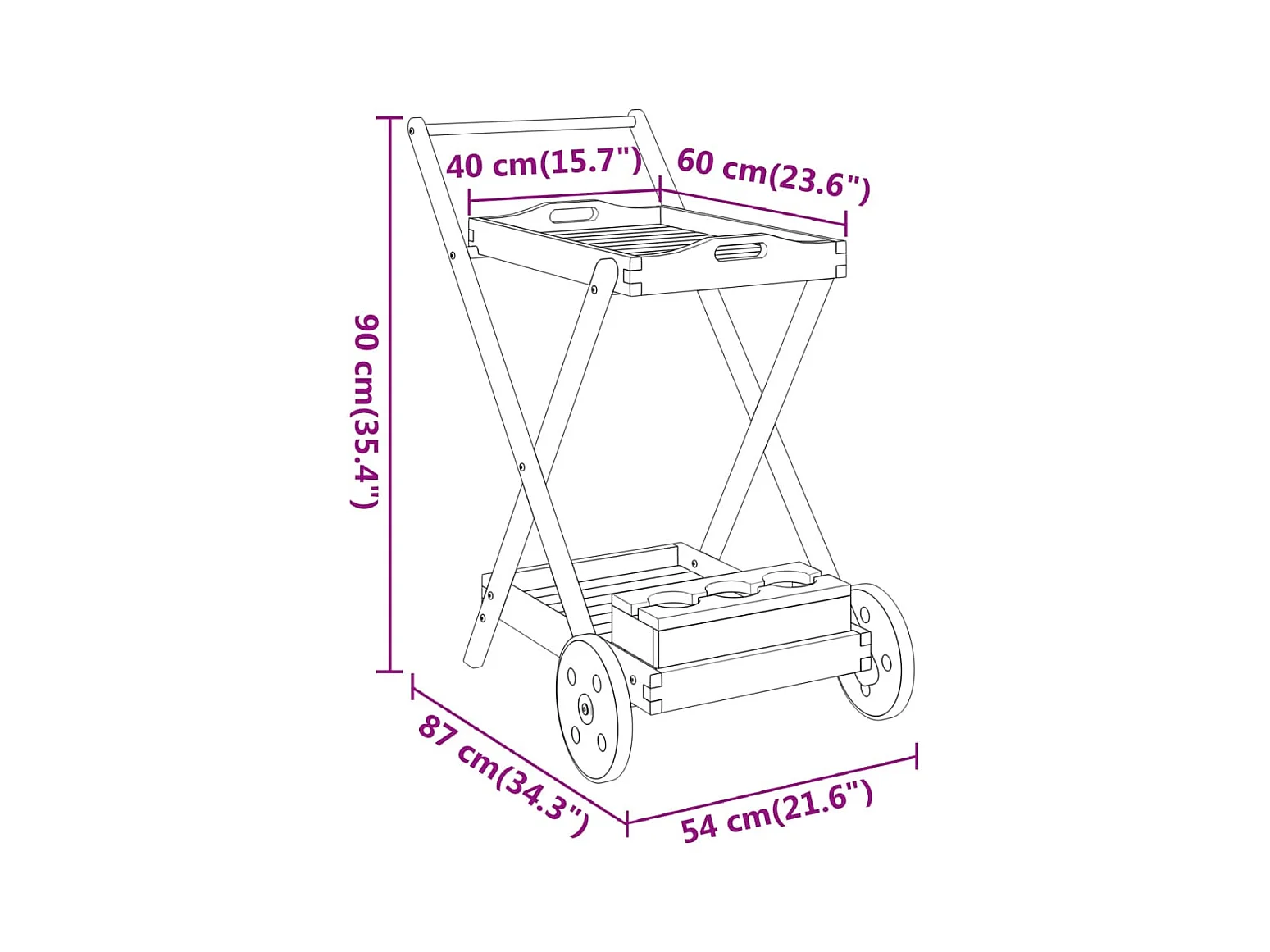 Chariot de bar 60x40x80 bois massif d'acacia et fer