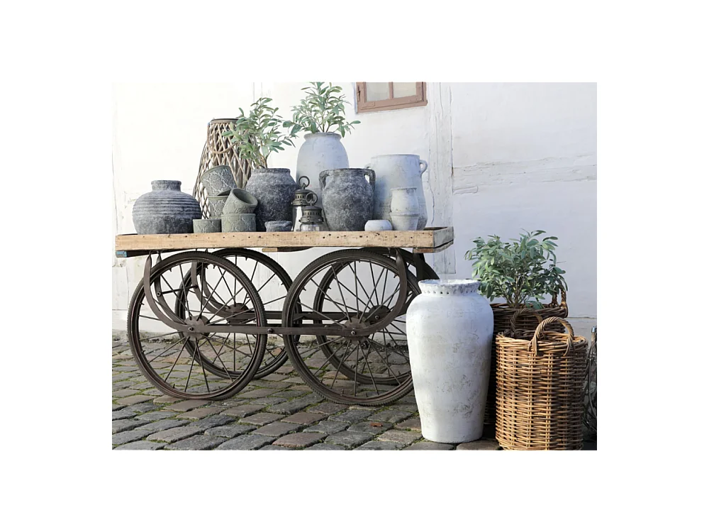 Chariot ancien en bois recyclé marron et fer noir 144 x 70 x 79 cm