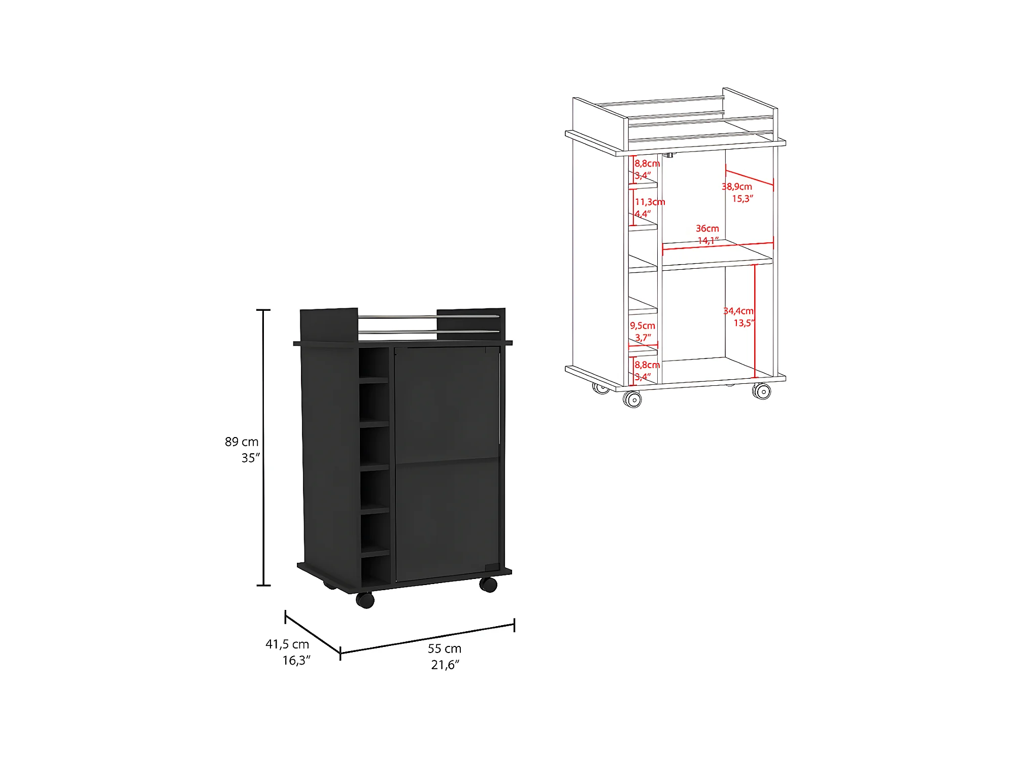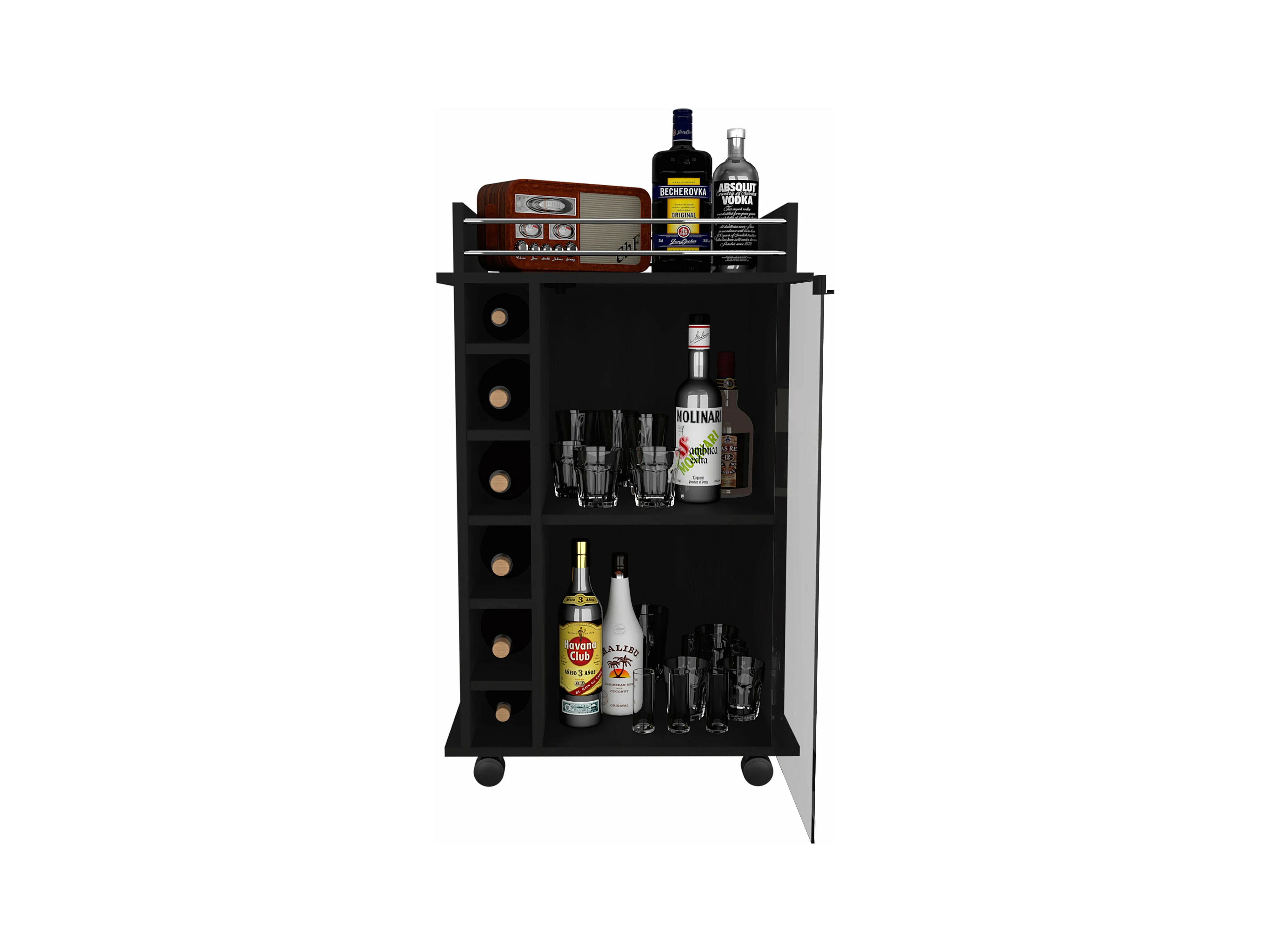 Chariot de bar Dukat avec porte en verre et roulettes