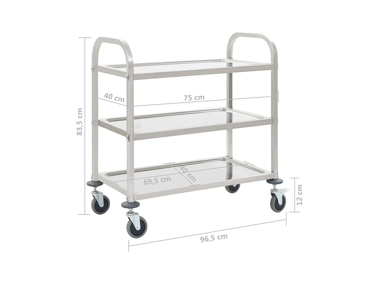 Chariot de cuisine à 3 niveaux 95x45x83,5 cm Acier inoxydable