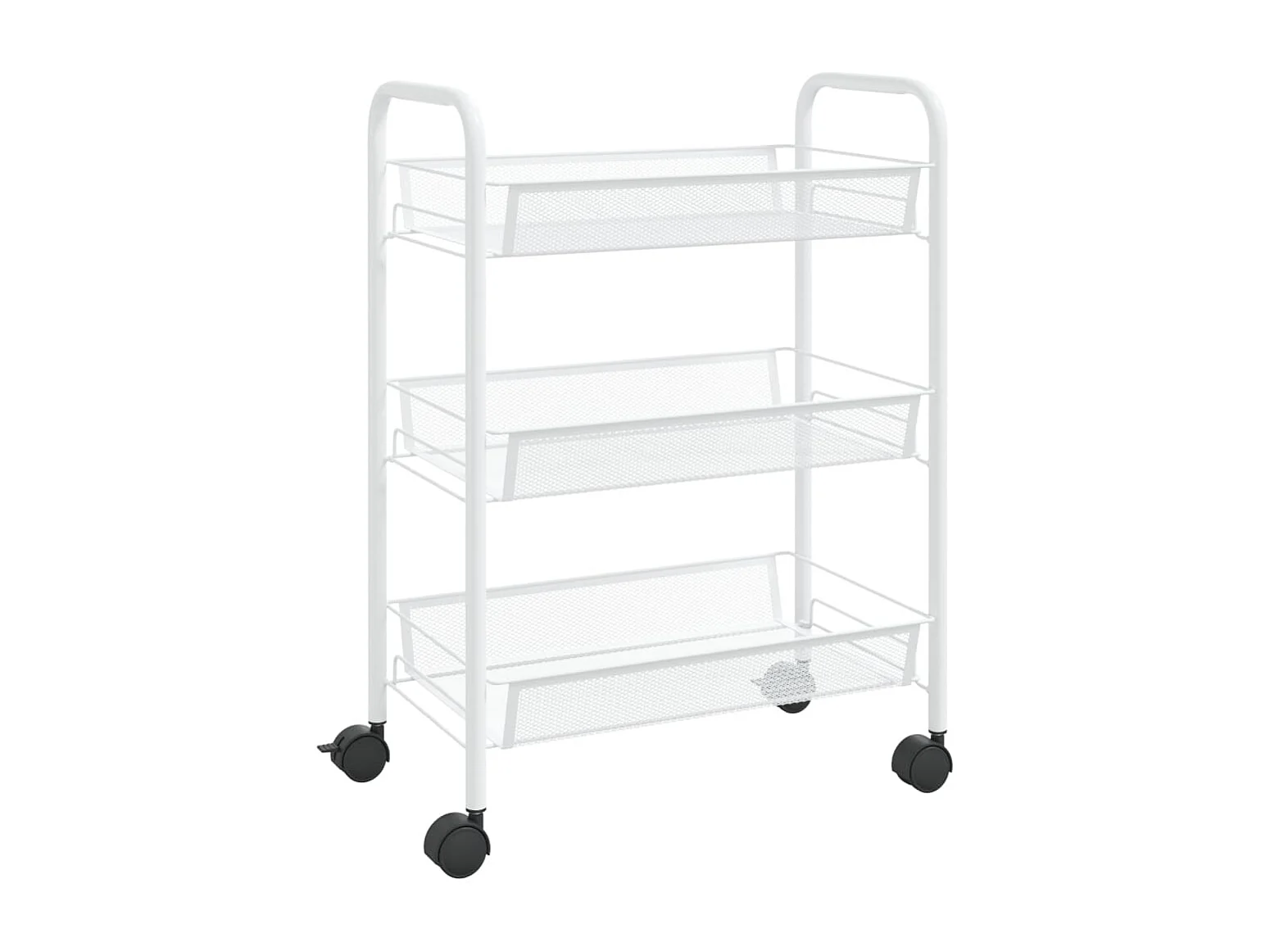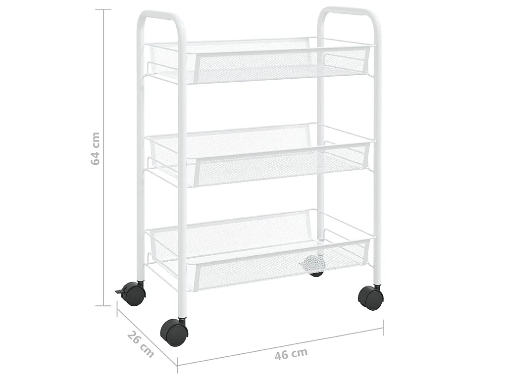 Chariot de cuisine à 3 niveaux Blanc 46x26x64 cm Fer