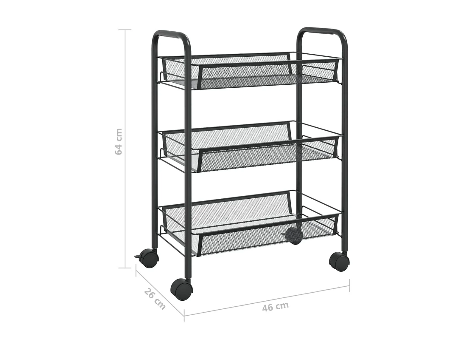 Chariot de cuisine à 3 niveaux Noir 46x26x64 cm Fer
