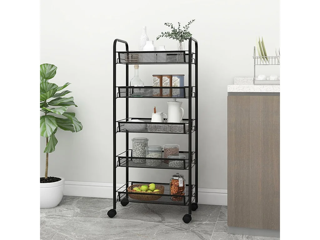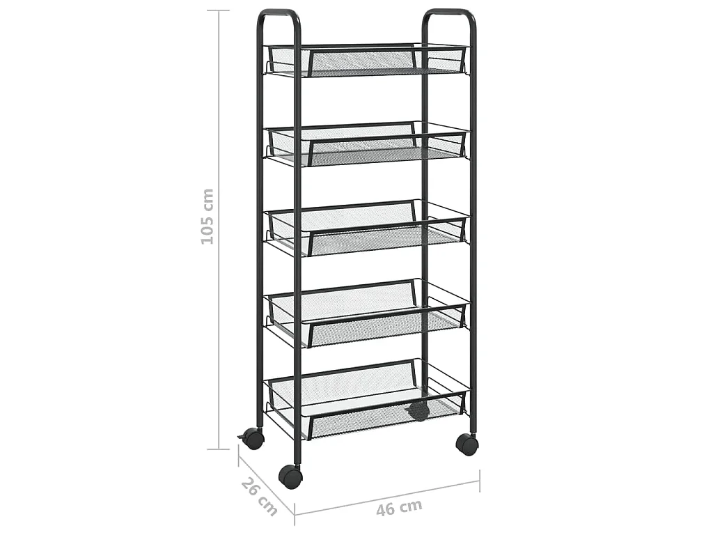 Chariot de cuisine à 5 niveaux Noir 46x26x105 cm Fer