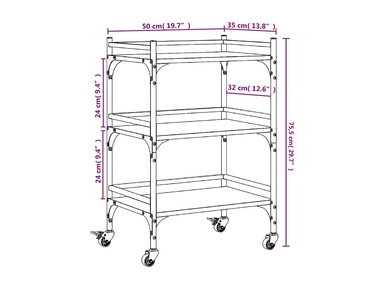 Chariot de cuisine chêne fumé 50x35x75,5 cm bois d'ingénierie