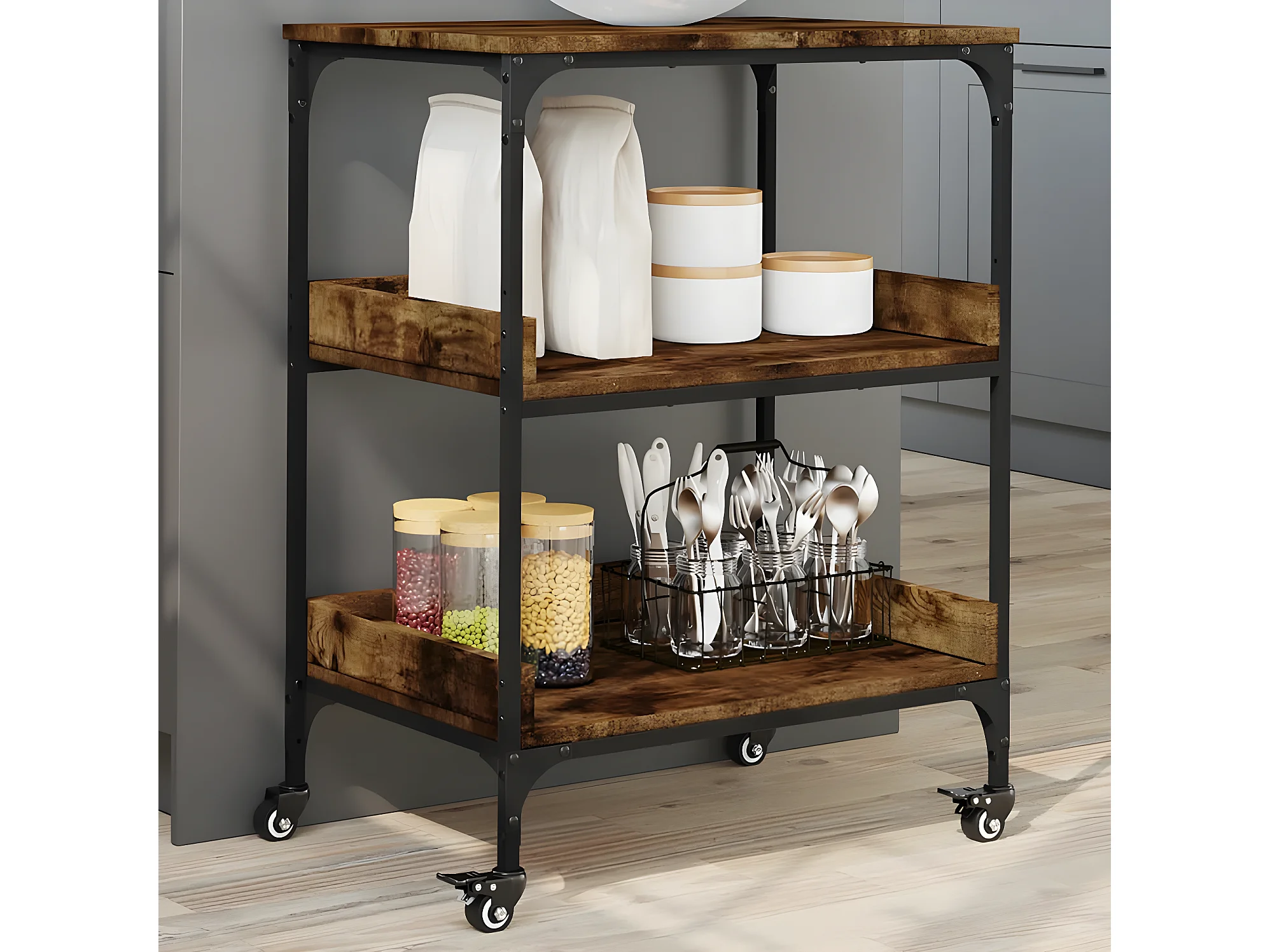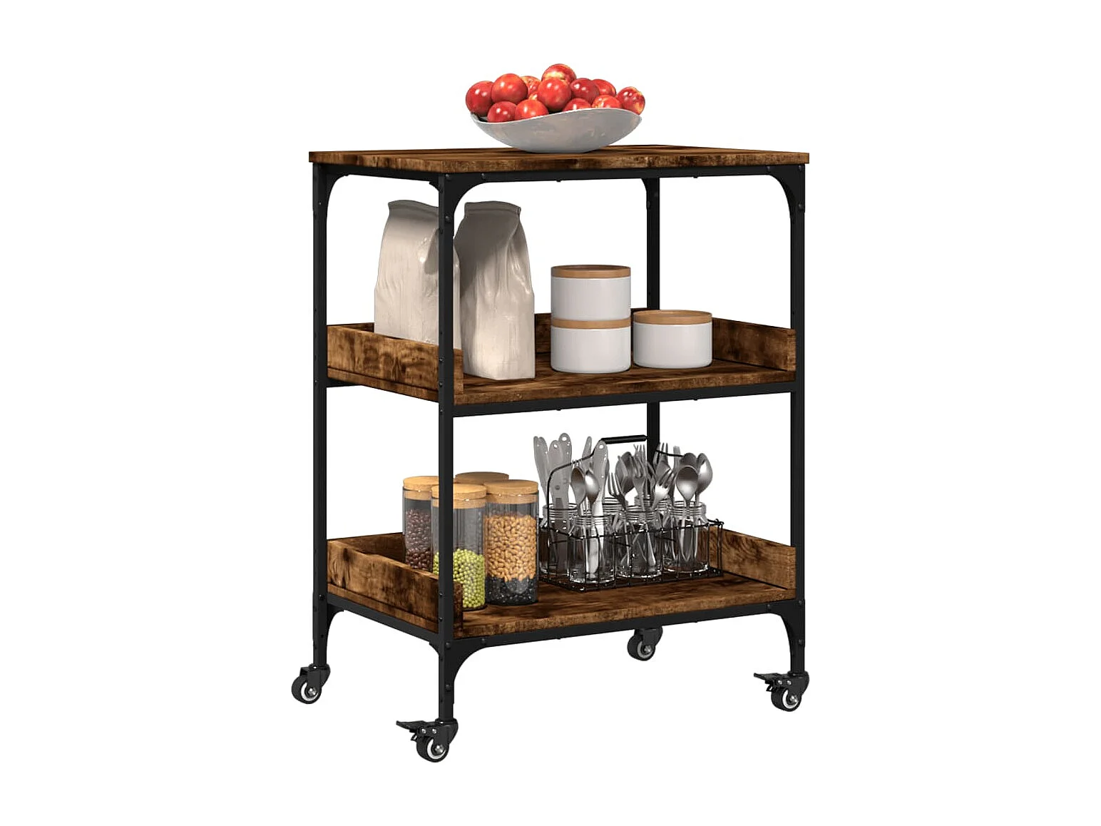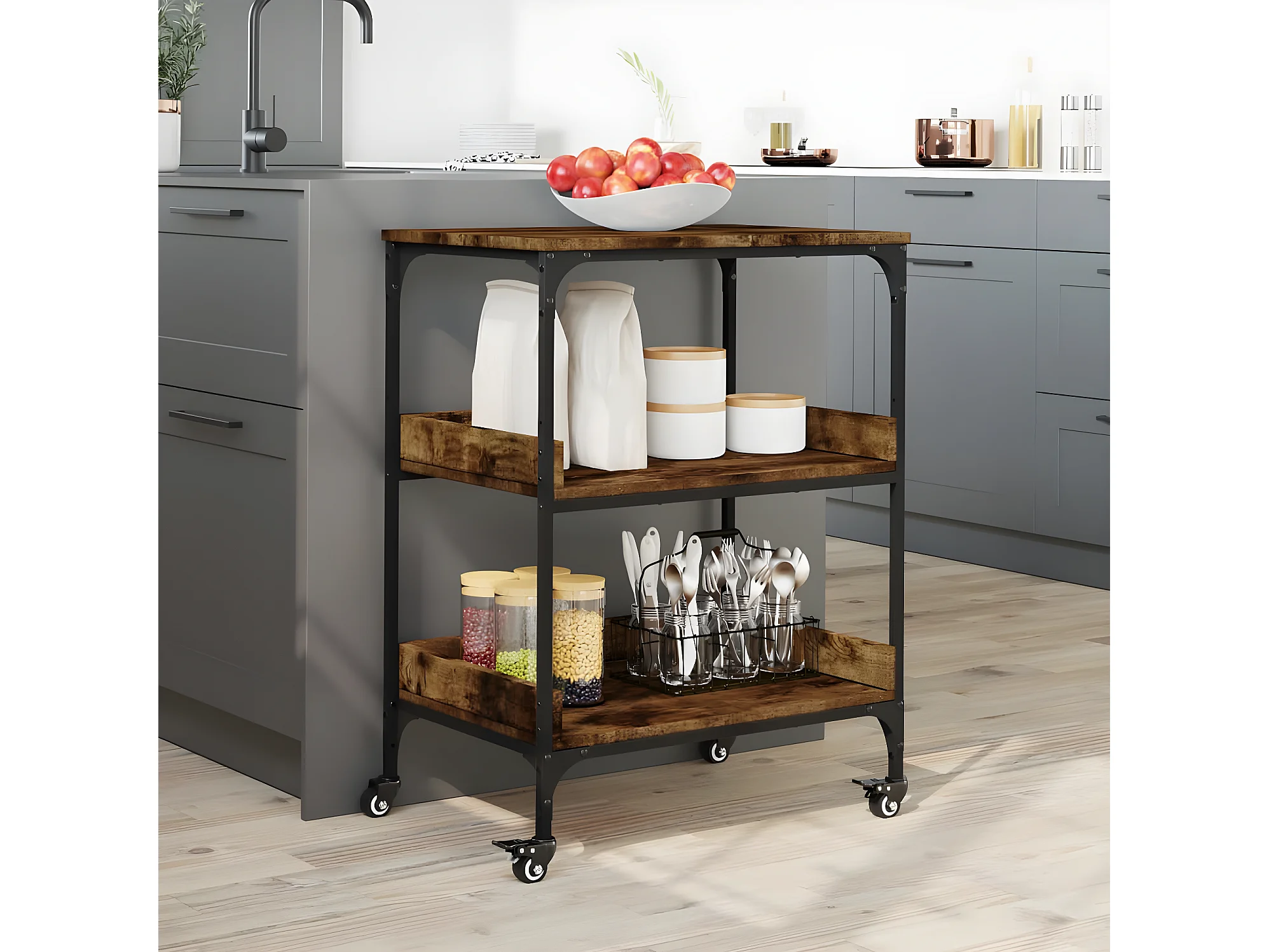 Chariot de cuisine chêne fumé 60x41x80,5 bois d'ingénierie