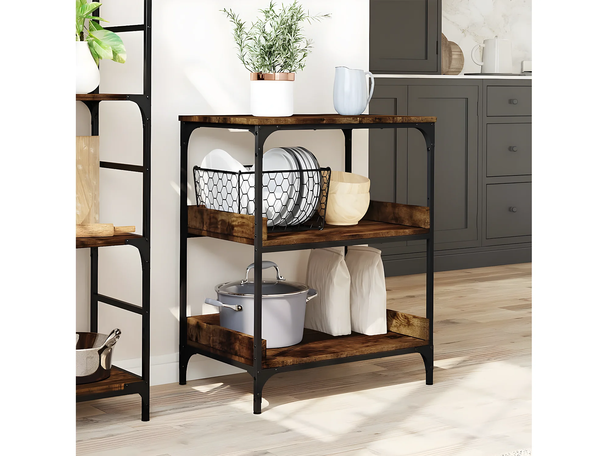 Chariot de cuisine chêne fumé 60x48x89,5 bois d'ingénierie