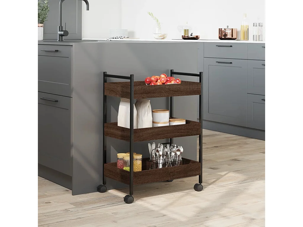 Chariot de cuisine chêne marron 50x30x70 cm bois d'ingénierie