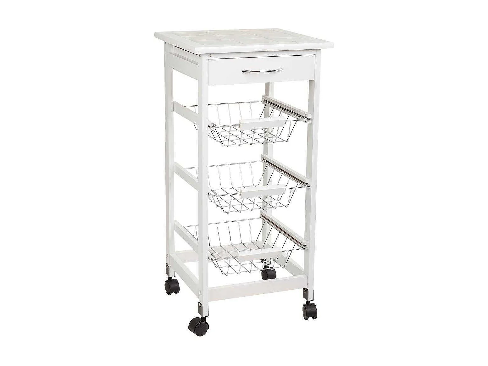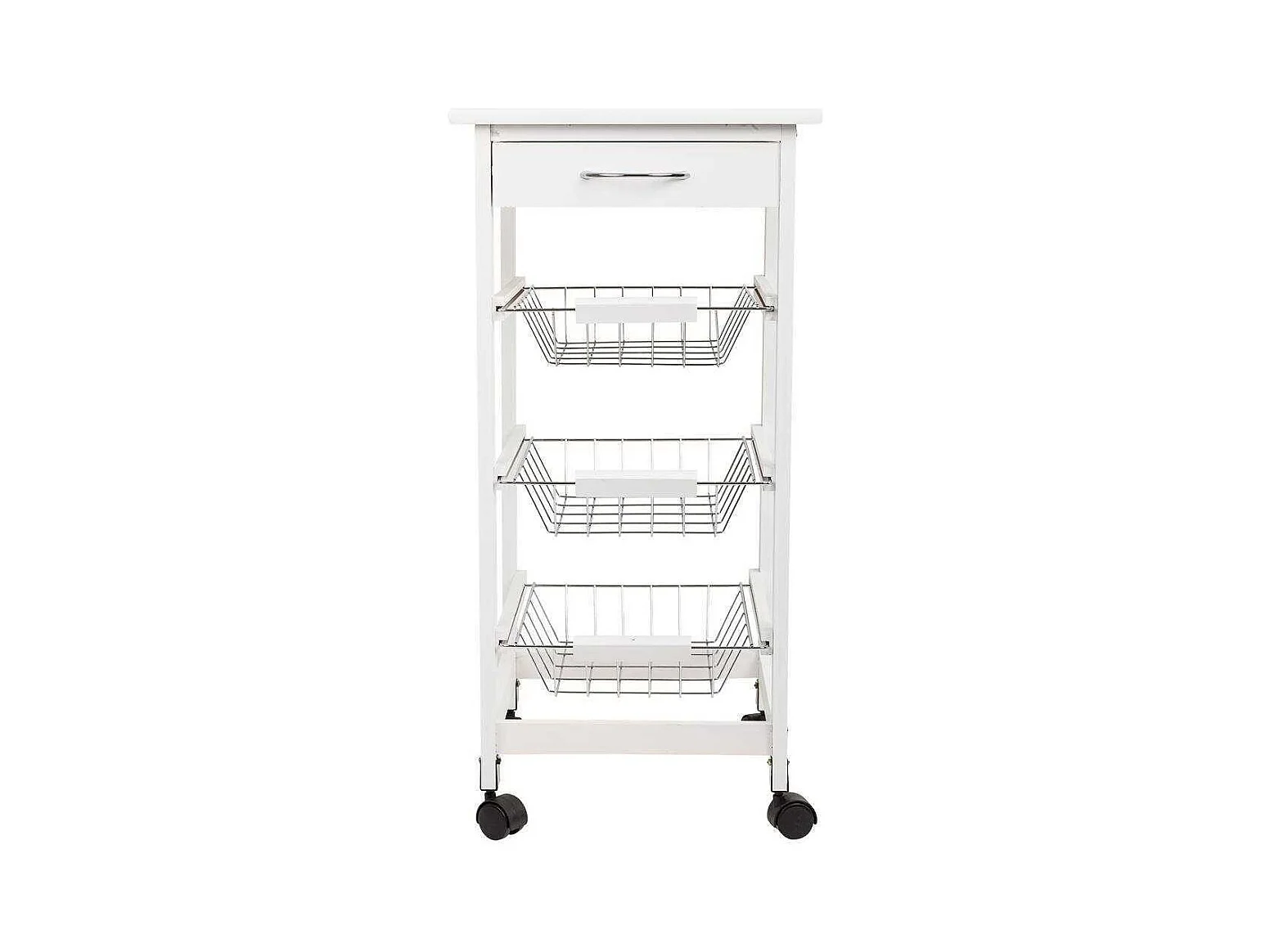 Desserte chariot de cuisine sur roulettes - 4 paniers coulissants, tiroir, plateau - bois blanc MDF bois clair