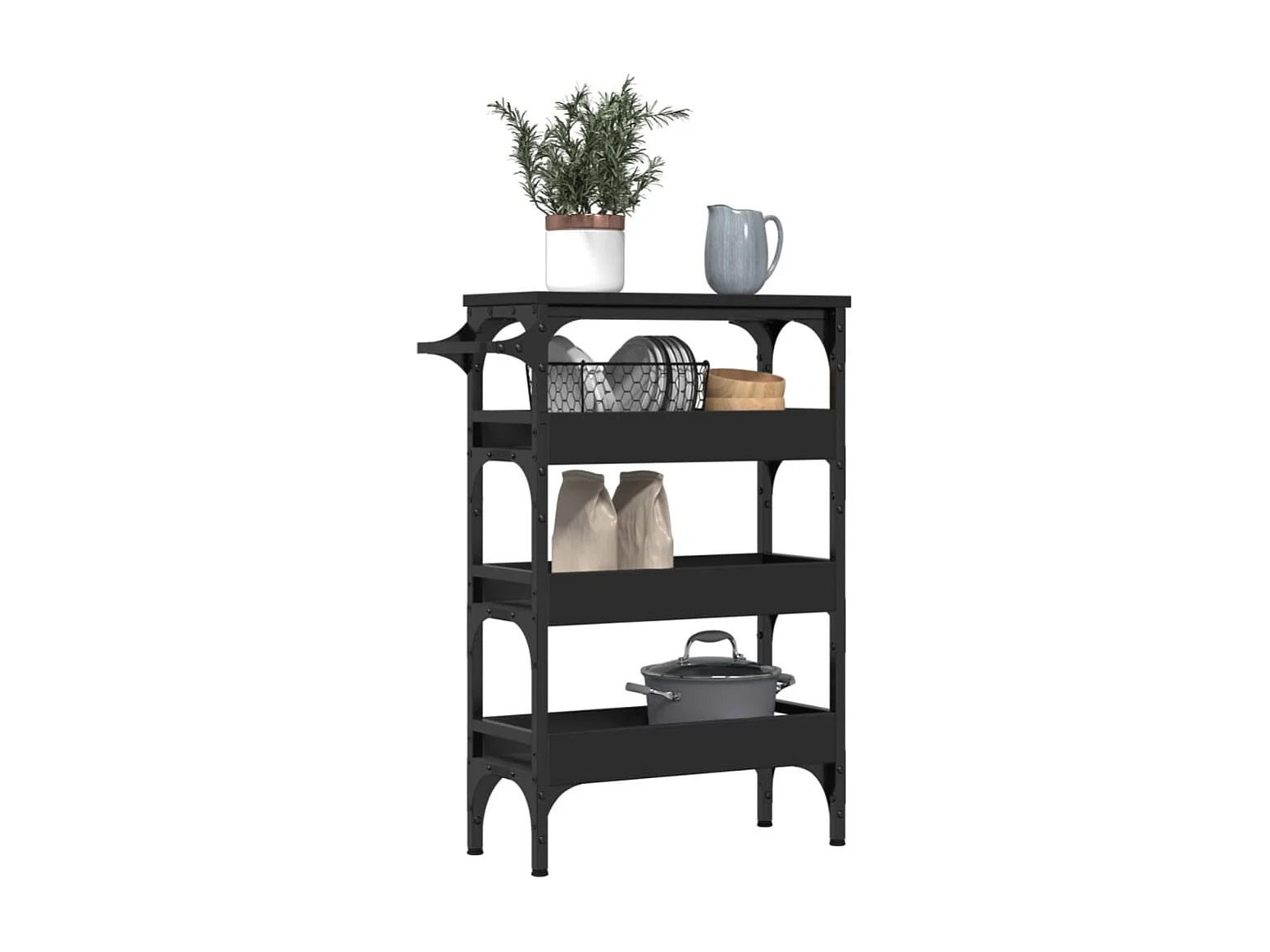 Chariot de cuisine noir 53x20x76 bois d'ingénierie