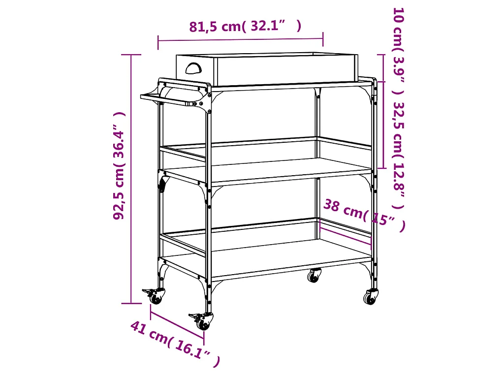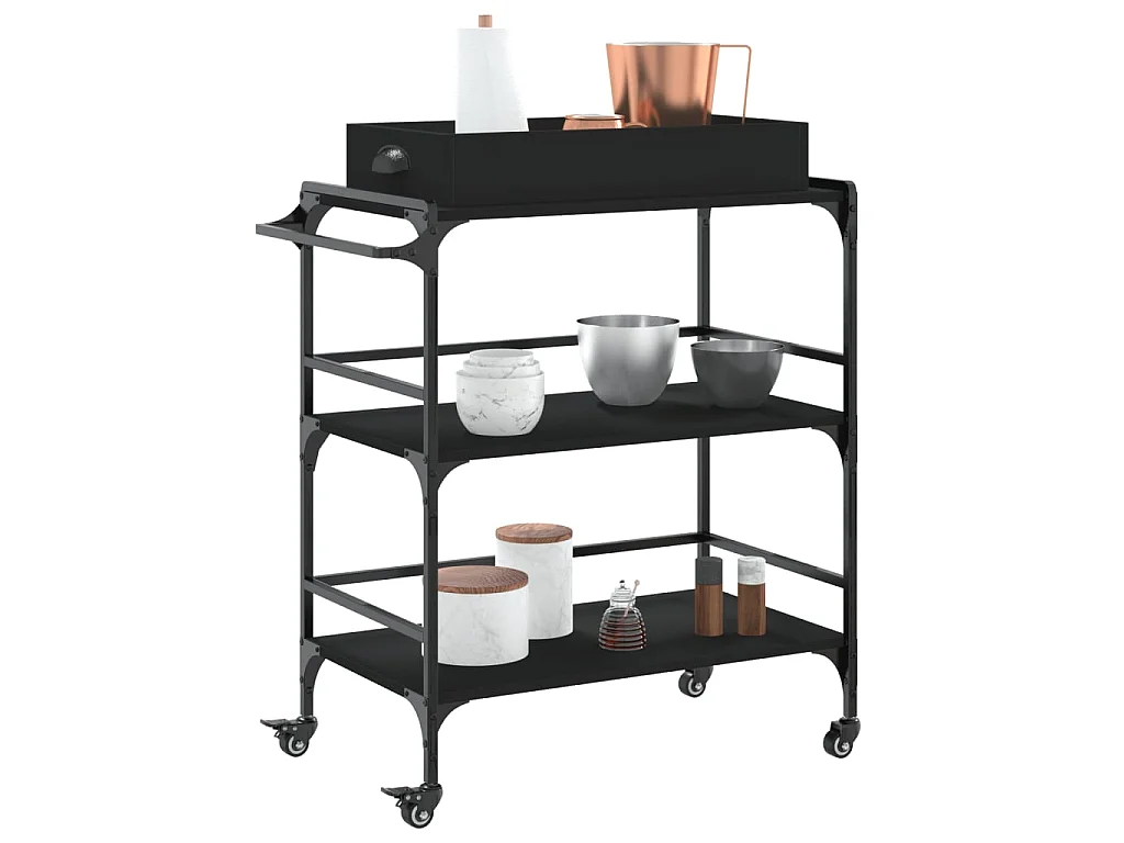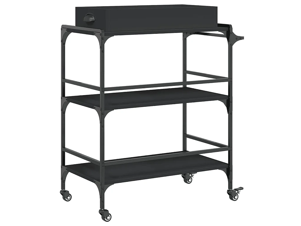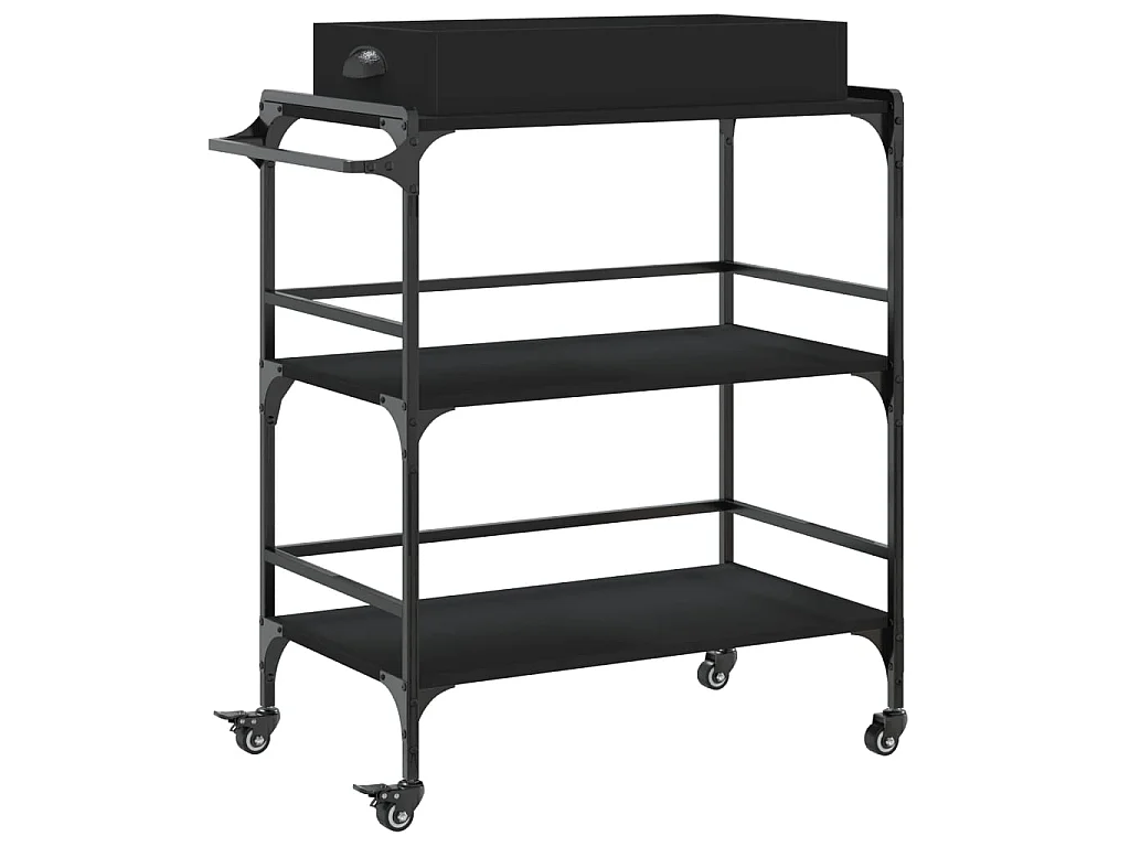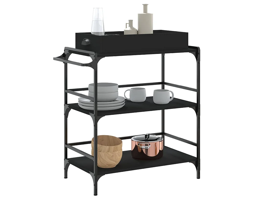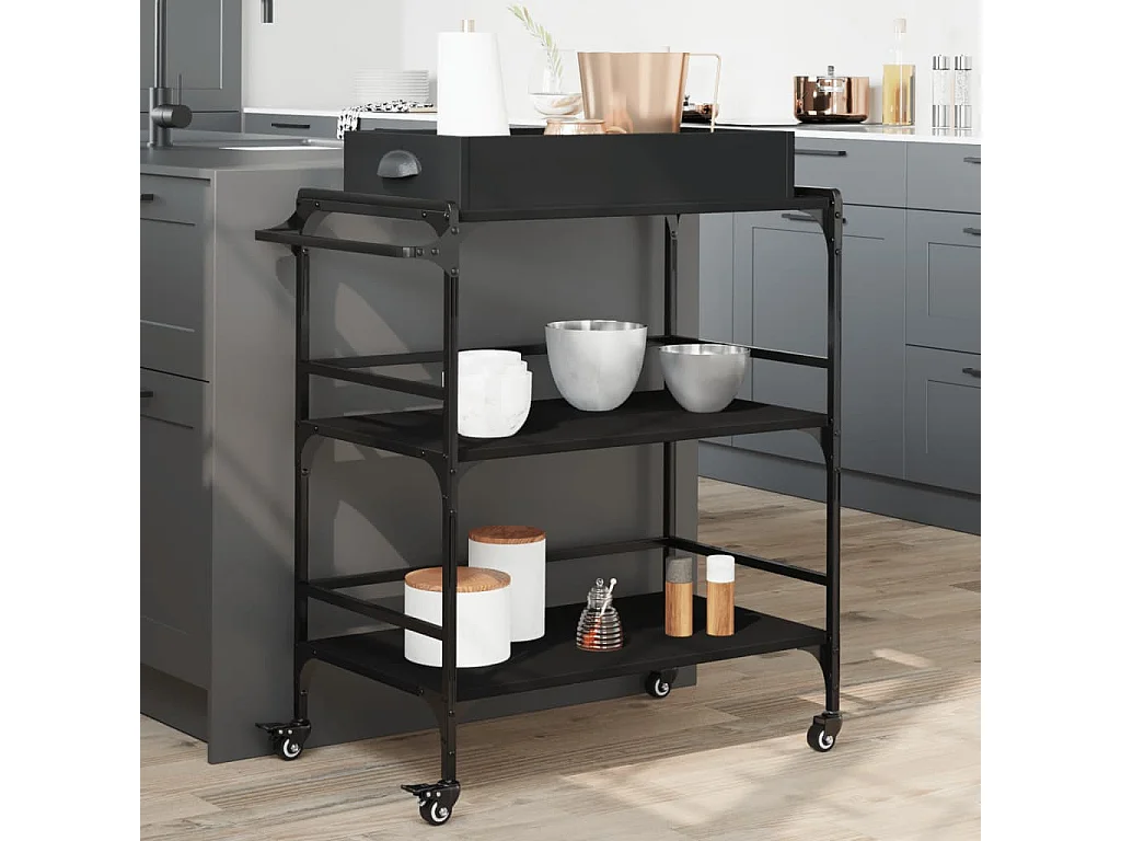 Chariot de cuisine noir 81,5x41x92,5 cm bois d'ingénierie