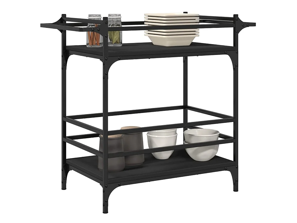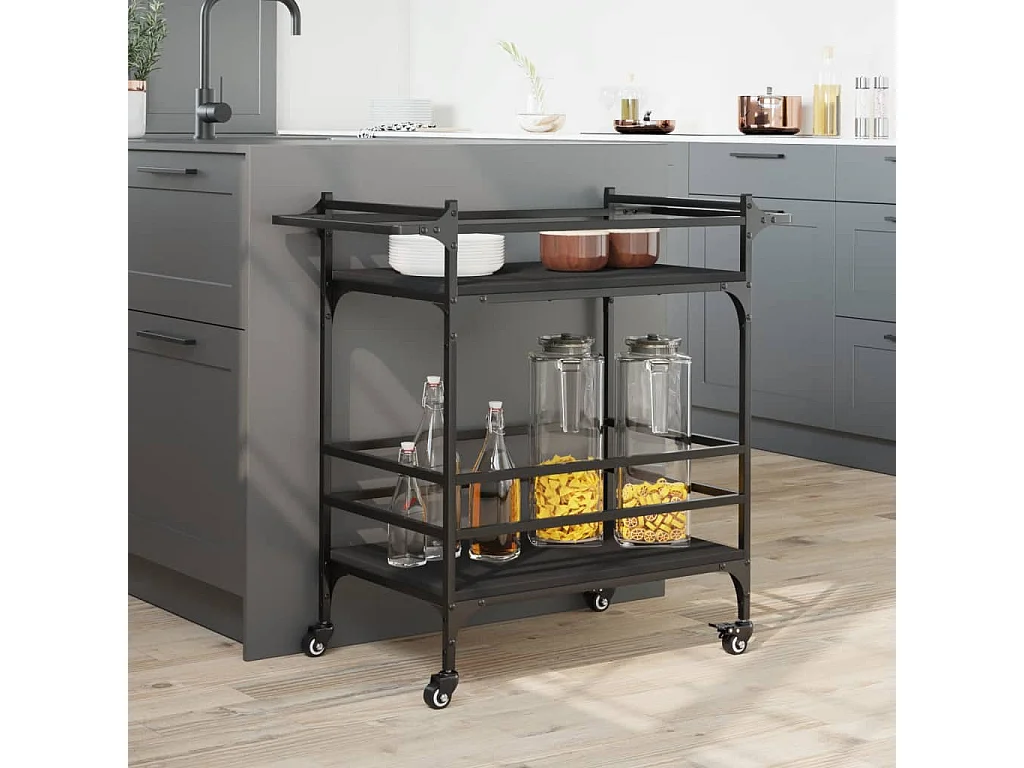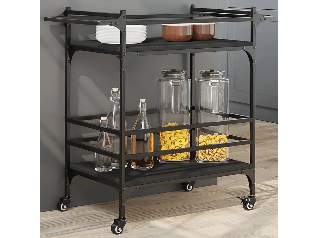 Chariot de cuisine noir 82x40x78,5 cm bois d'ingénierie