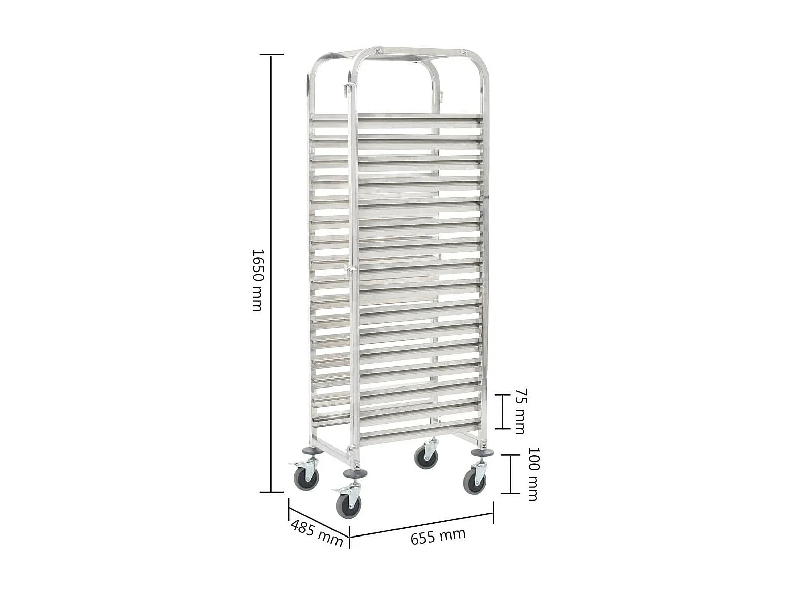 Chariot de cuisine pour 16 plateaux 65,5x48,5x165 Inox
