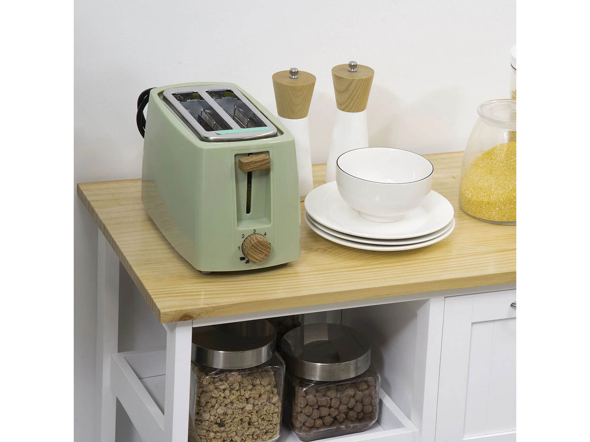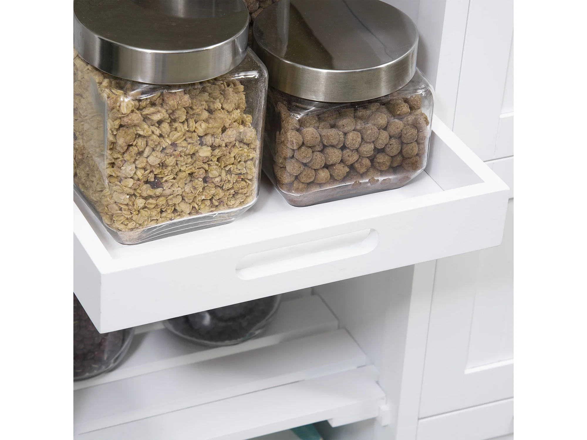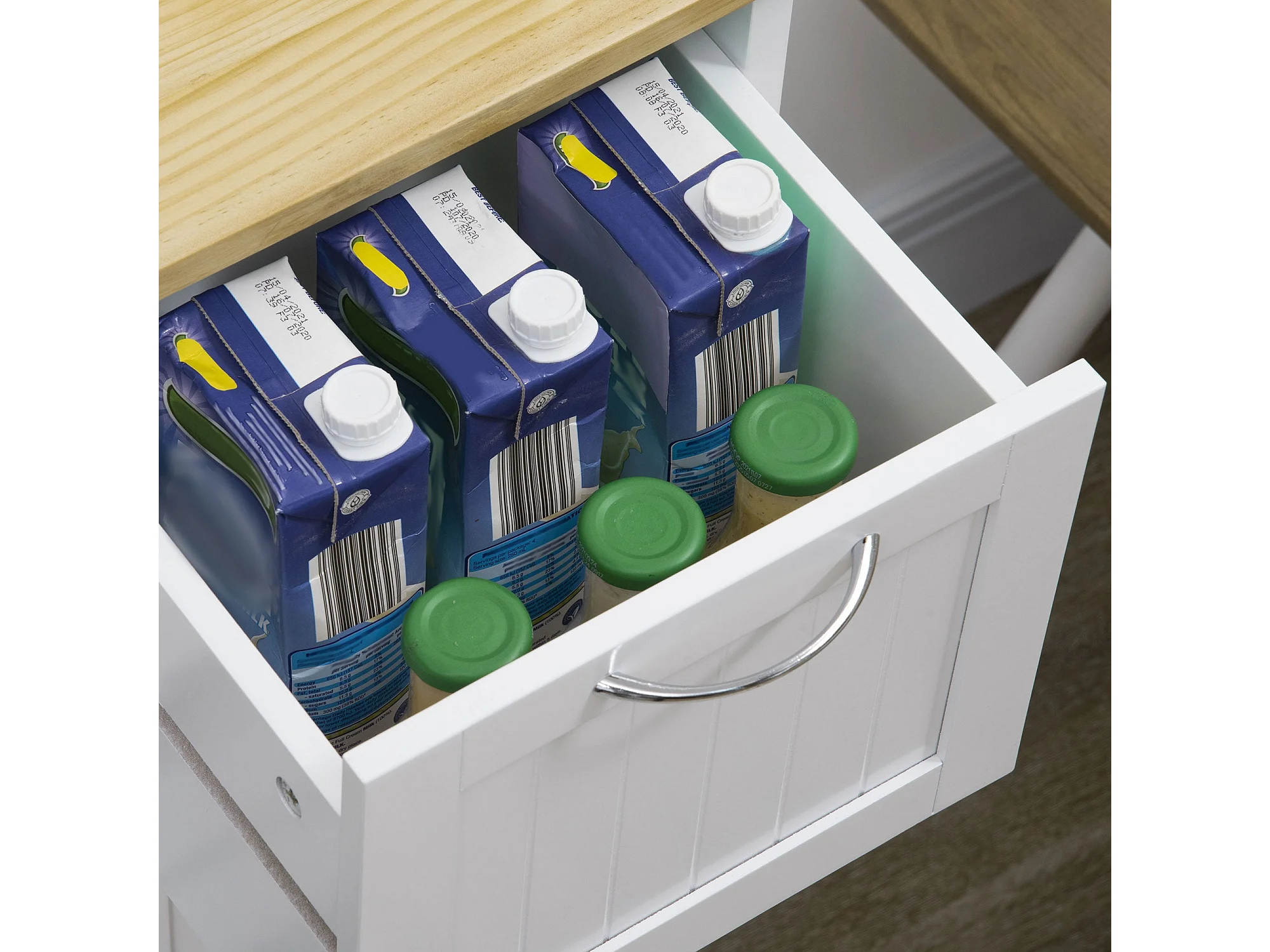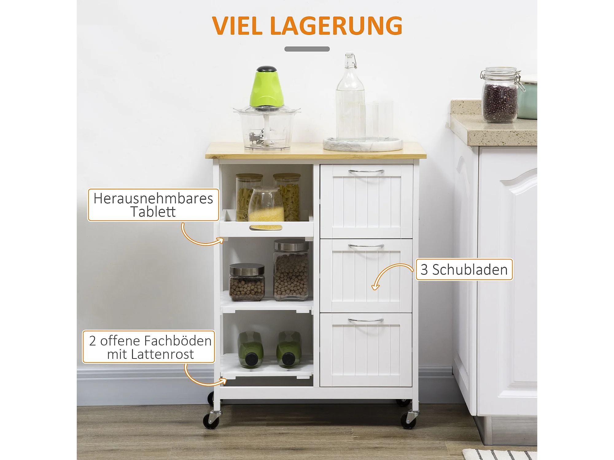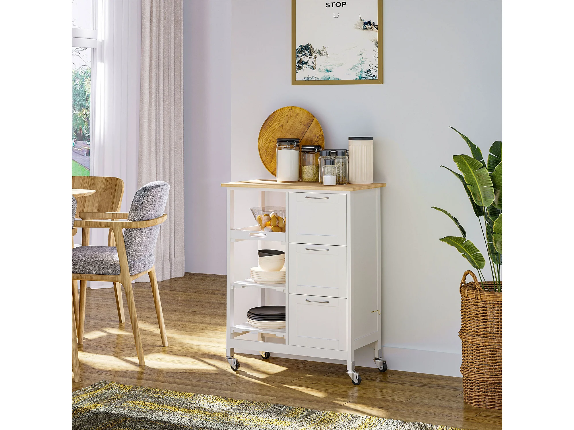Chariot de cuisine style champêtre, îlot sur roulettes avec 3 tiroirs – Blanc