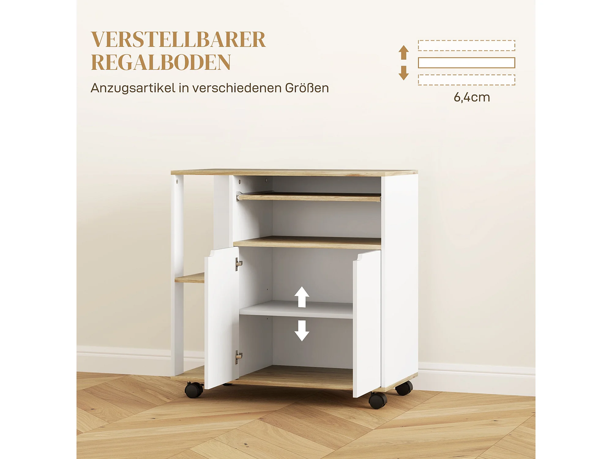 Chariot de cuisine sur roulettes avec rangement, placard et étagères réglables – Blanc – Pour cuisine, salon et salle à manger