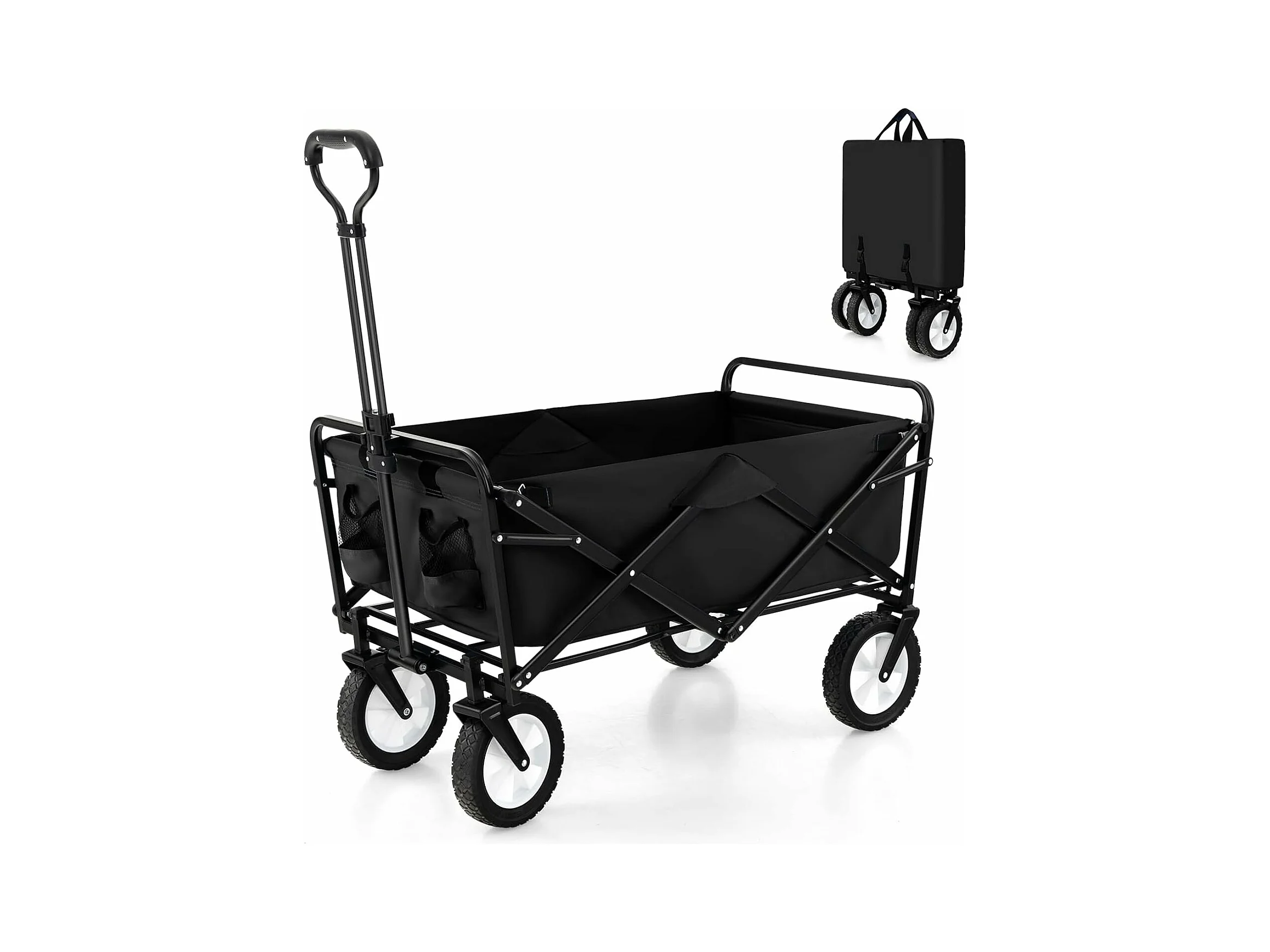 Chariot pliable pour plage avec roues en plastique et capacité de charge maximale de 120 kg en noir