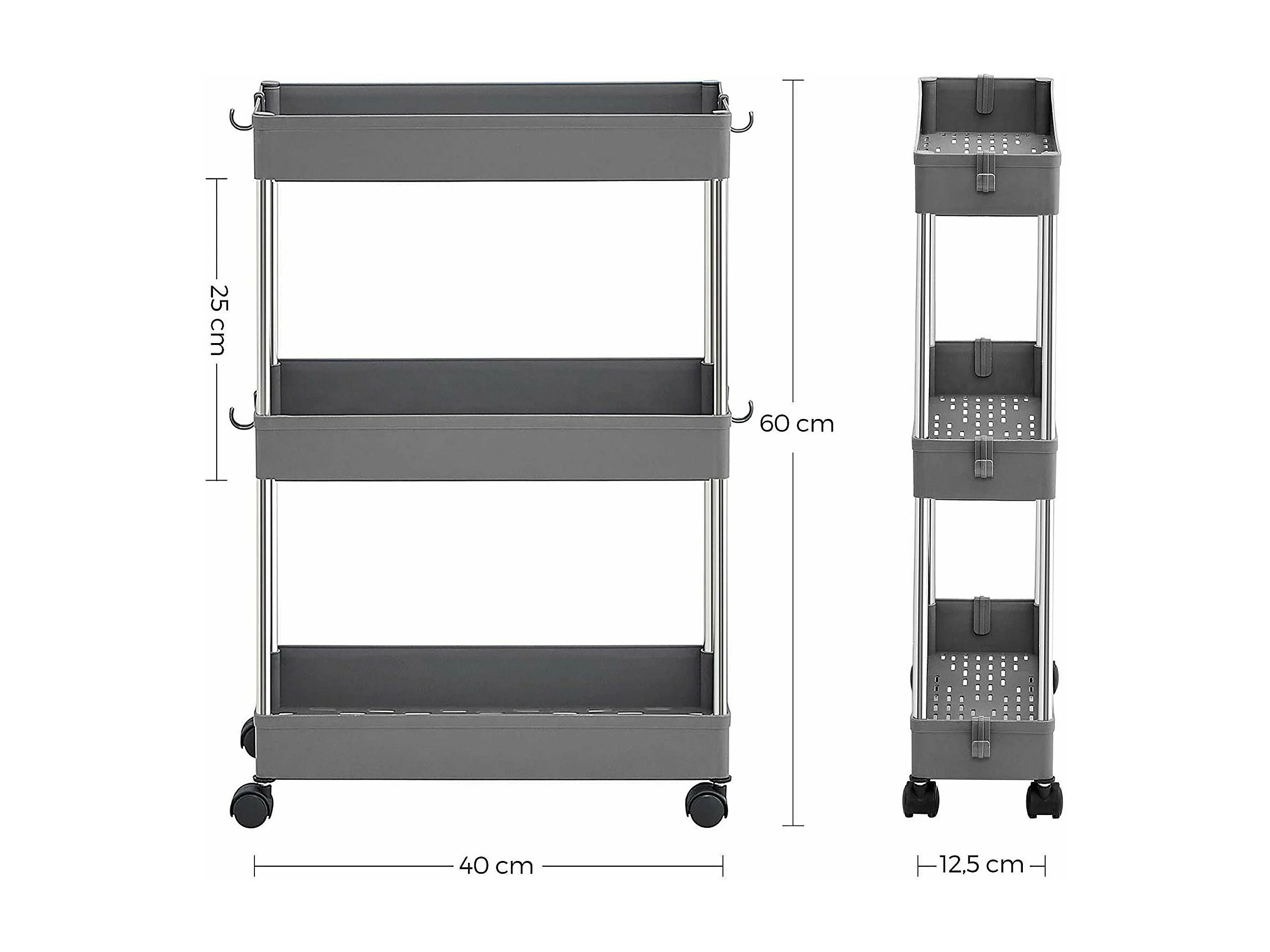 Chariot de rangement mobile grise 40 x 12.6 x 60 cm 12_0003492