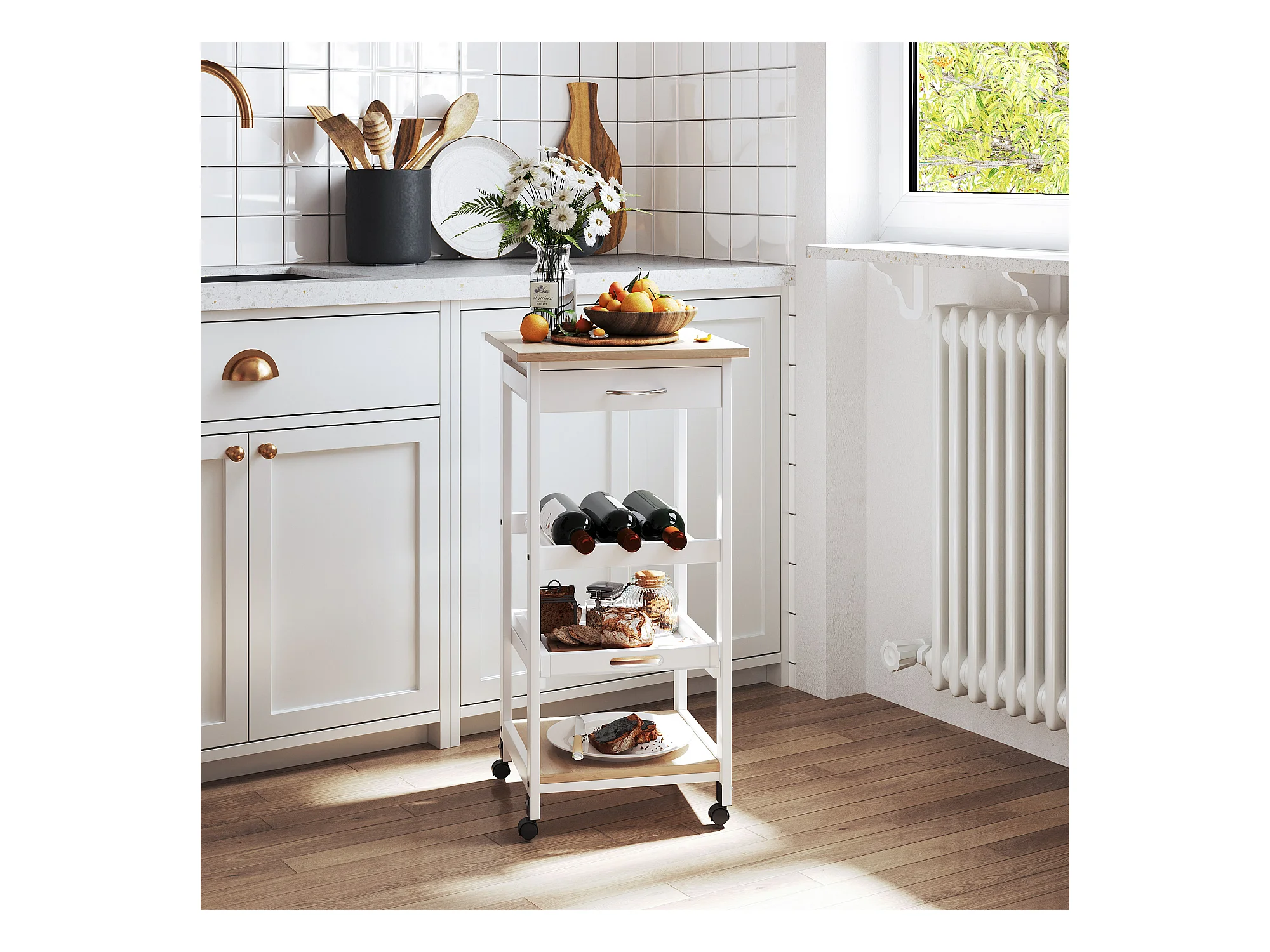 Desserte de cuisine multi-rangement - 3 tiroirs, 2 étagères, plateau amovible - bois hévéa MDF blanc