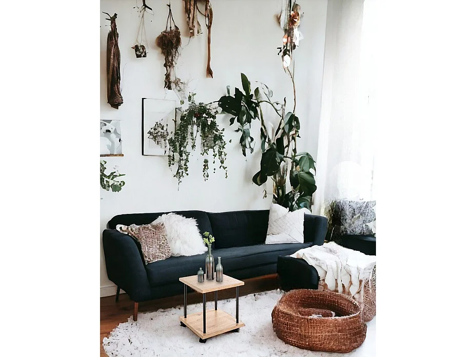 Chariot de service, desserte en bois chêne, métal noir -longueur 40 x profondeur 40 x hauteur 45 cm