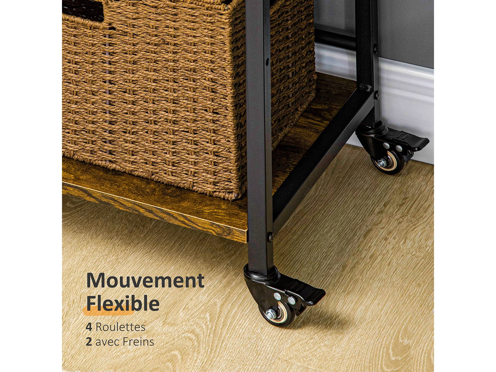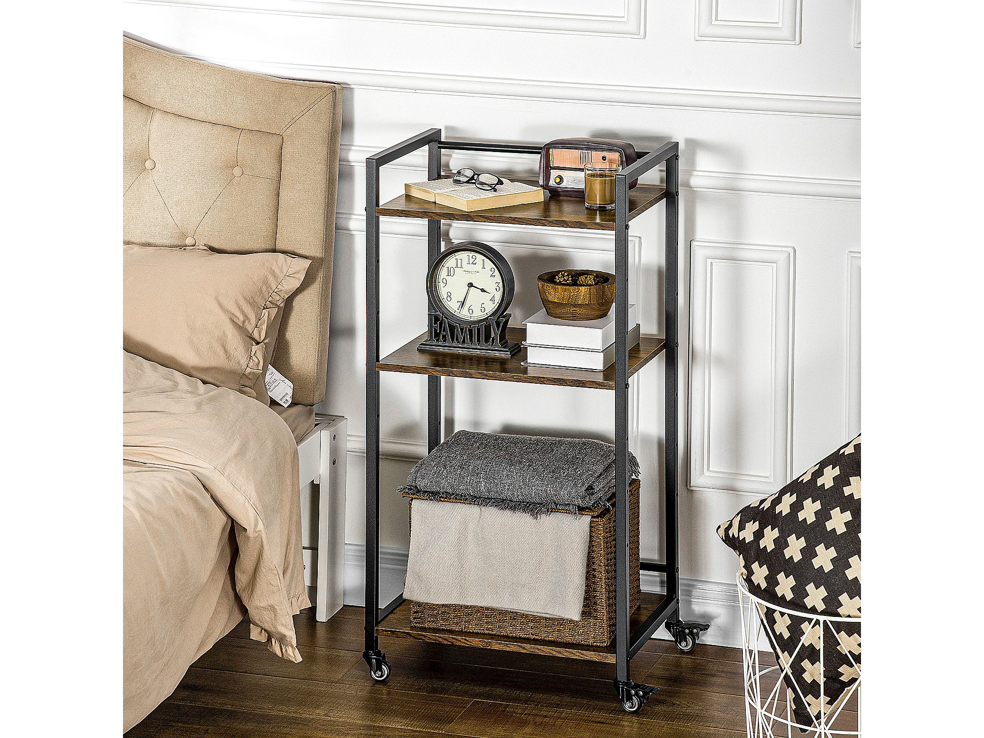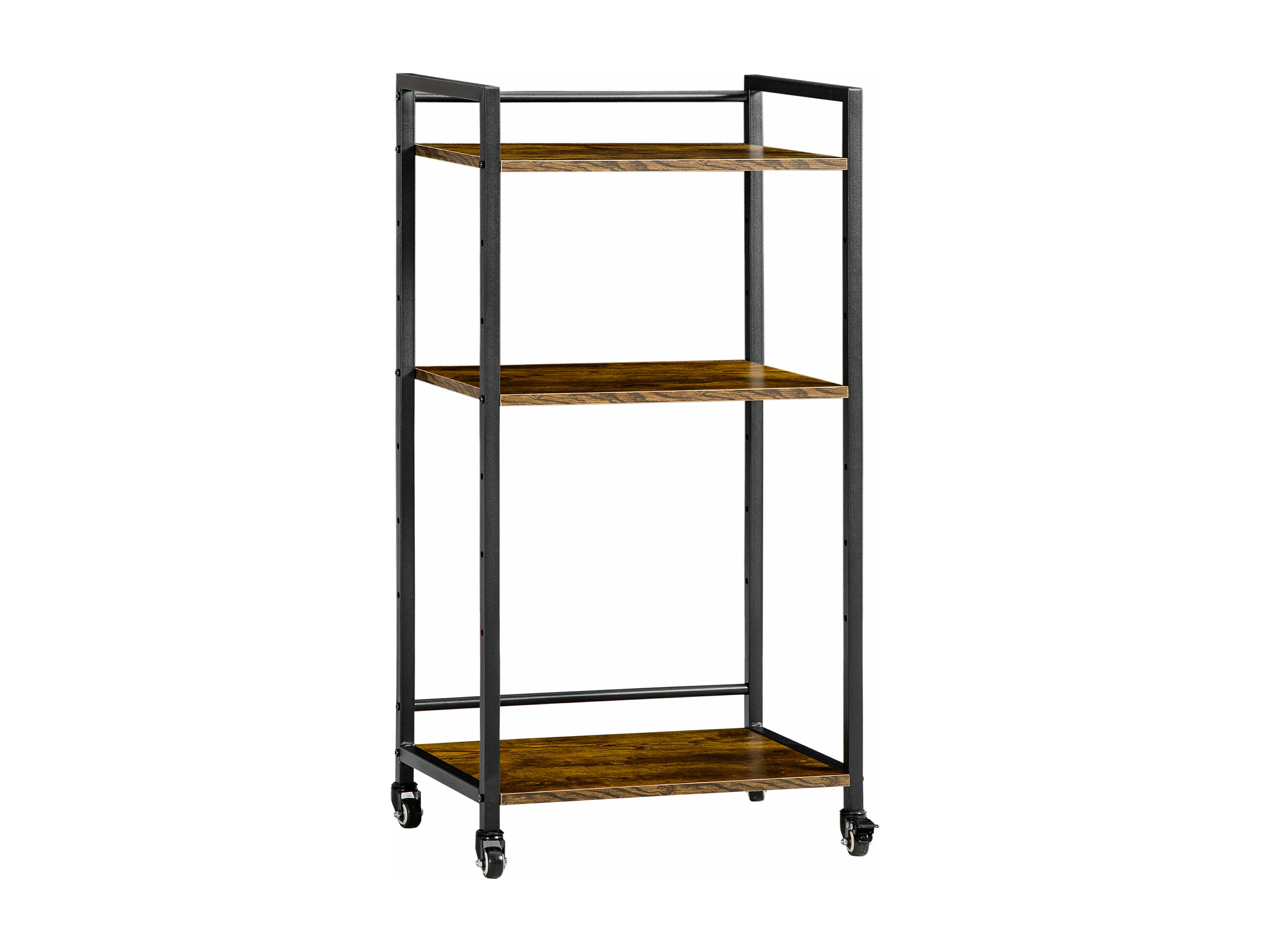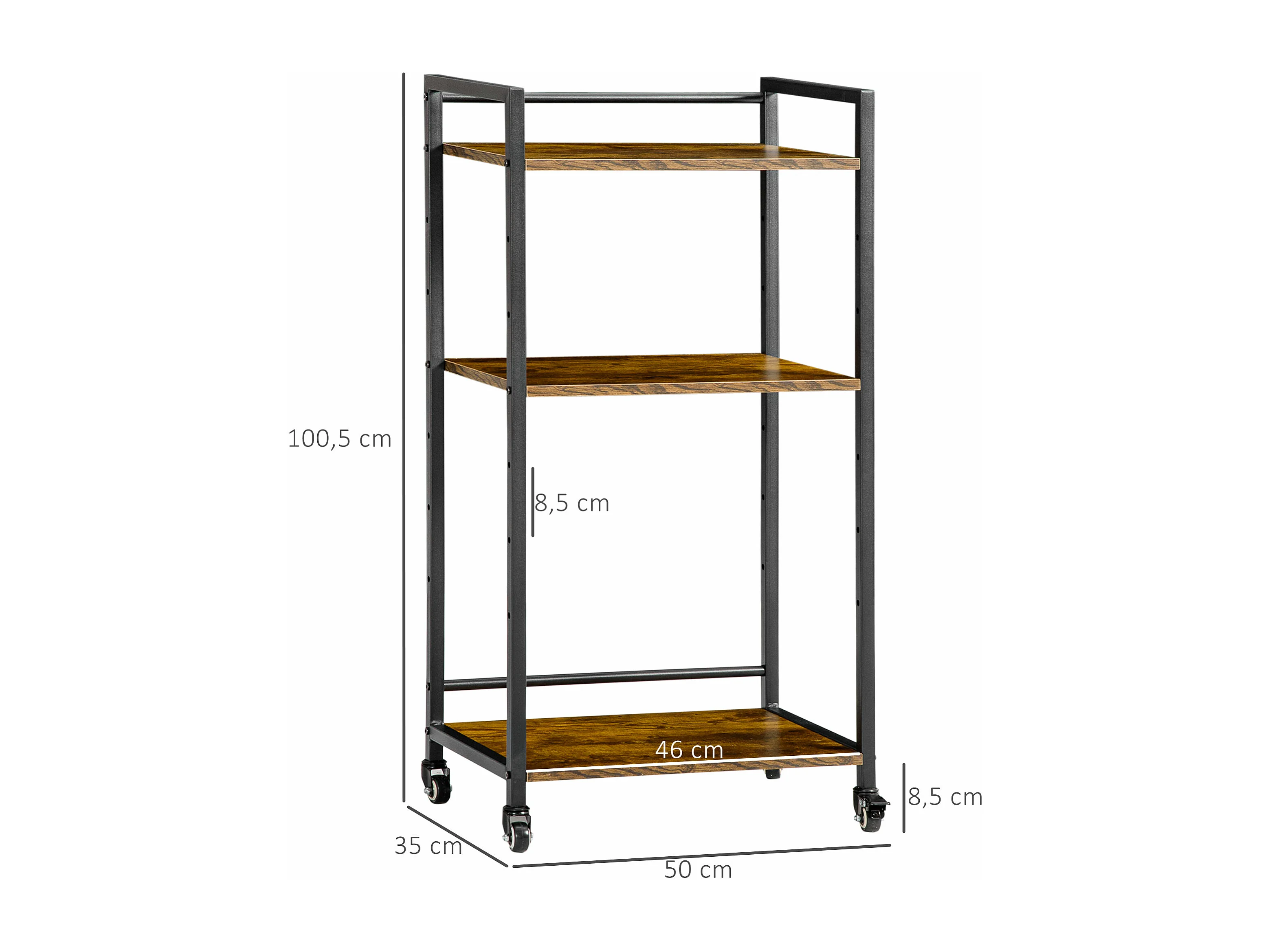 Chariot de service desserte Vintage style industriel 3 étagères réglables acier noir panneaux particules aspect bois